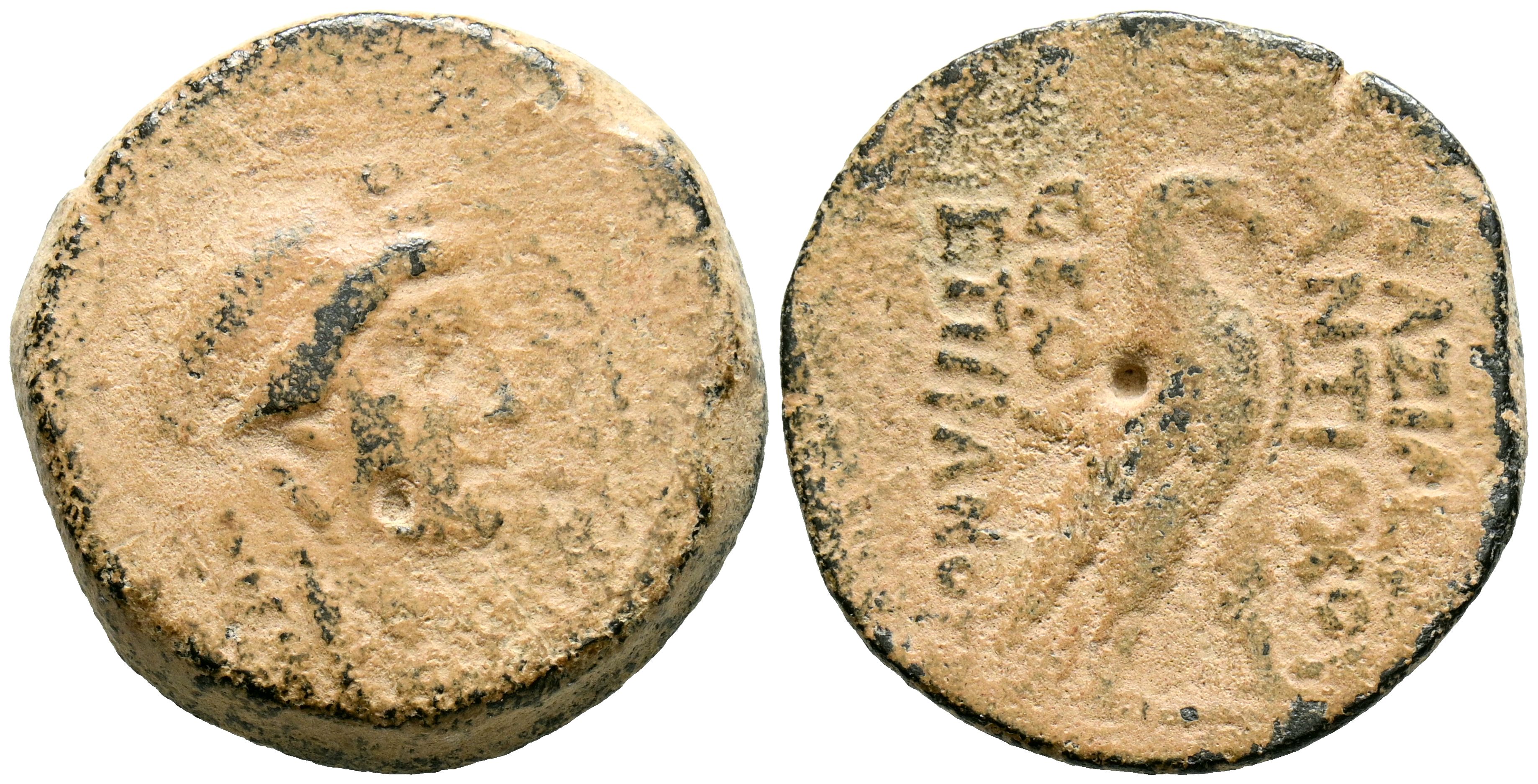 English SELEUCID EMPIRE, Antiochos IV Epiphanes. Ae26. (Ae. 16.40g/26mm). 175-164 BC Antioch. (HGC 9, 644). Anv: Diademed head of Isis on the right. Rev: Eagle standing right on ray, around Greek legend. Almost Very Fine.