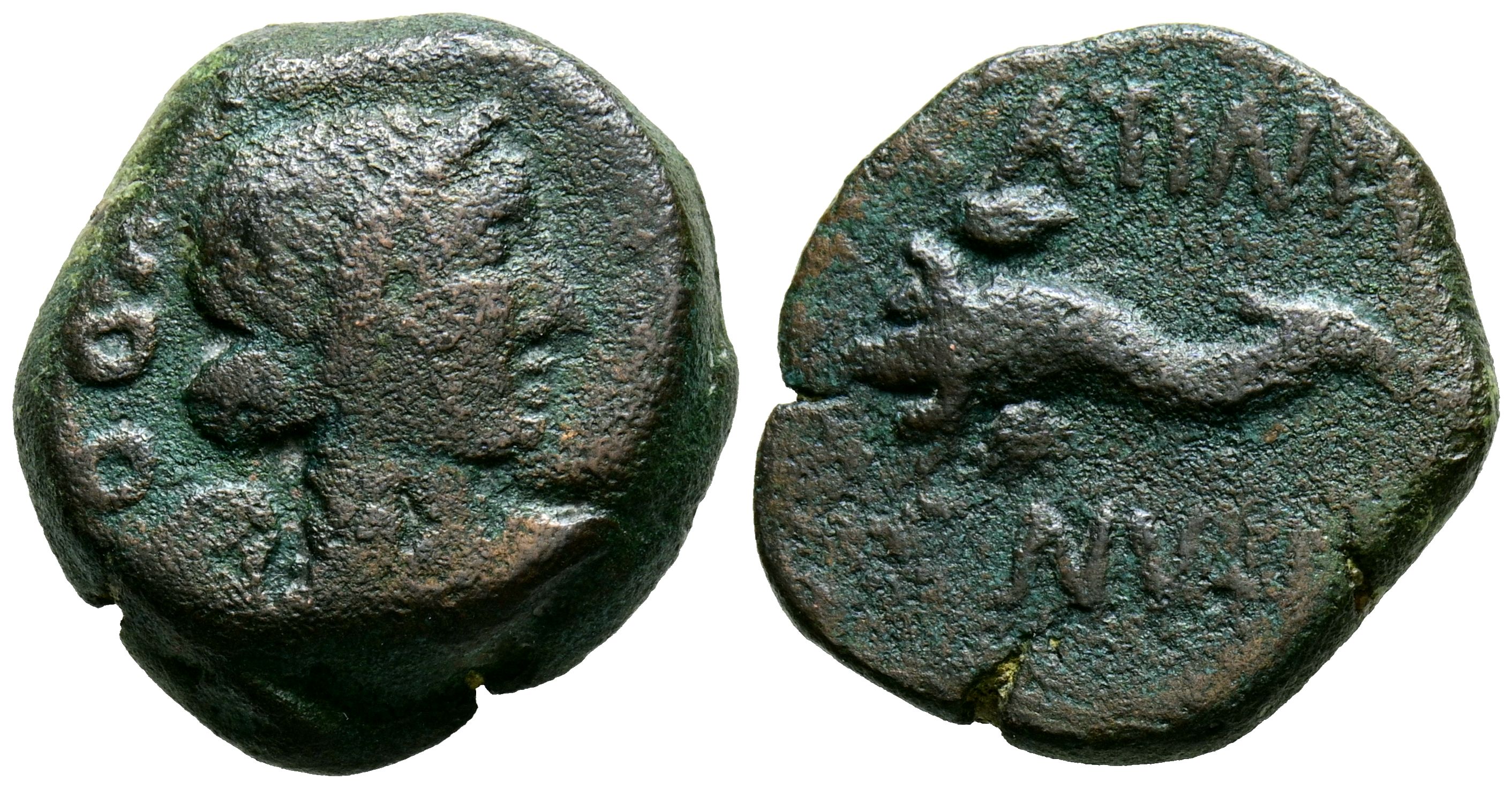 CARTEIA (San Roque, Cádiz). Semis. (Ae. 9.08g/20mm). 27 BC-14 AD (FAB-678). Anv: Bust of Victoria to the right, behind: EX D D. Rev: Cornucopia to the right, around legend: LATINI C NVCI IIII VIR. Very Fine. Scarce.