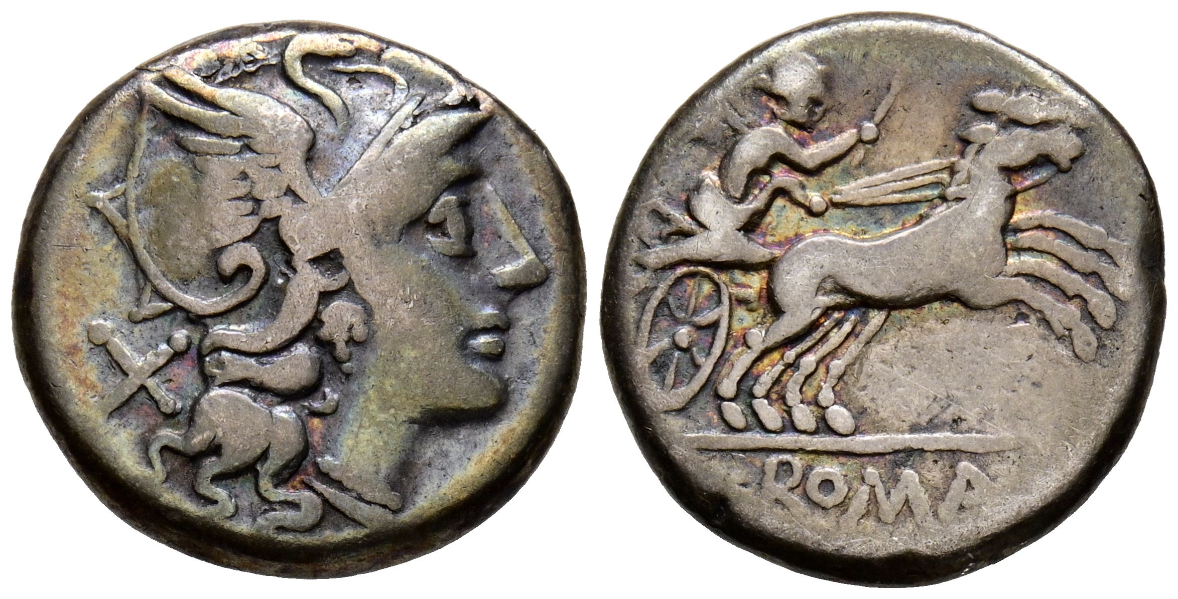 ANONYMOUS. Denarius. (Ar. 3.61g/16mm). 157-156 BC Rome. (Crawford 197/1; FFC 77). Anv: Head of Rome to the right, behind X. Rev: Victoria driving biga to the right with whip in hand, in exergue: ROME. Almost Very Fine.