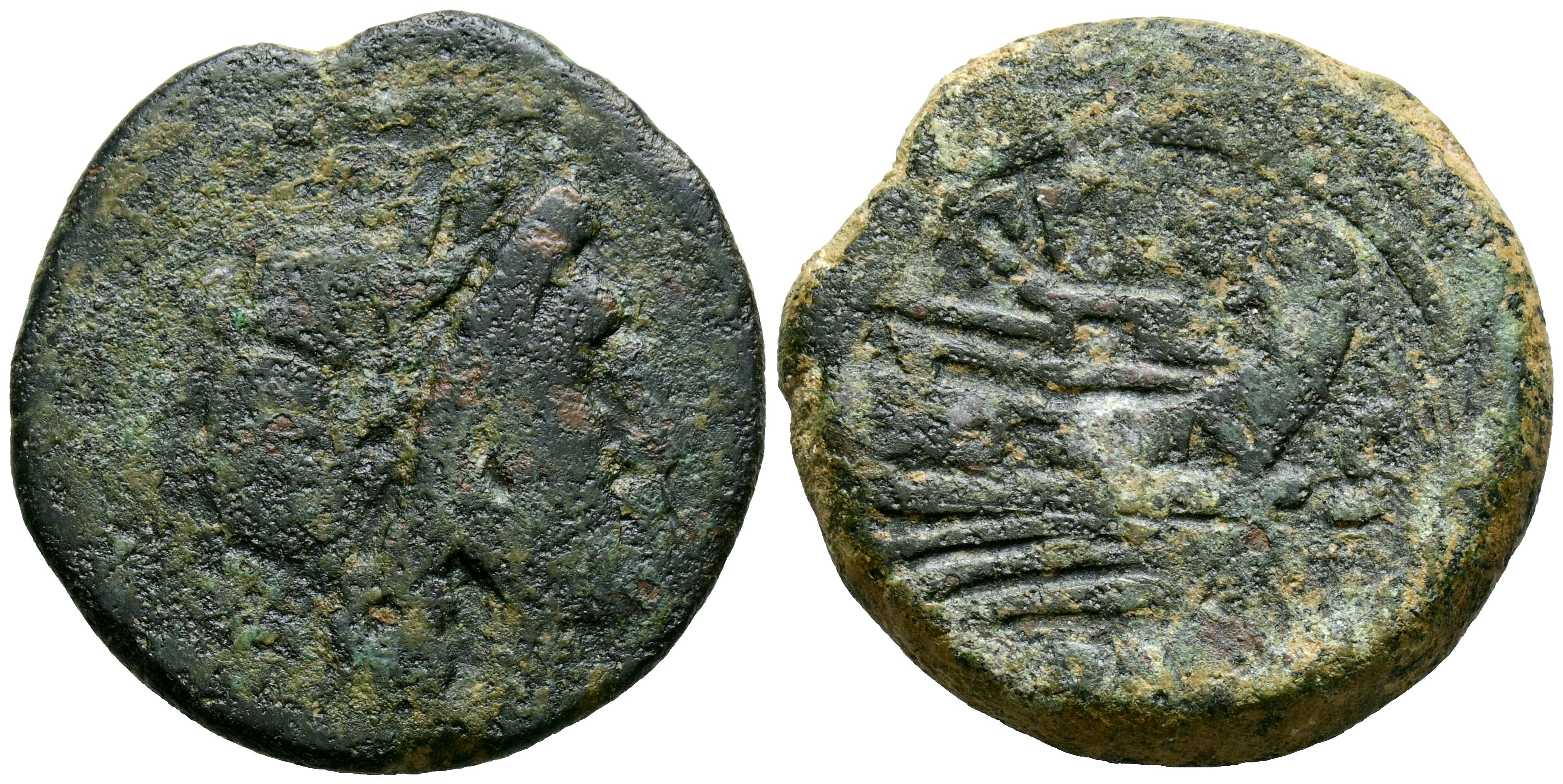 GENS CORNELIA. Semis. (Ae. 11.78g/27mm). 169-158 BC (Crawford 189/2). Anv: Laureate head of Saturn to the right, behind S. Rev: Bow to the right, above legend: P BLAS, in front: S, below legend: ROMA. Fine/ Good Fine. Scarce.