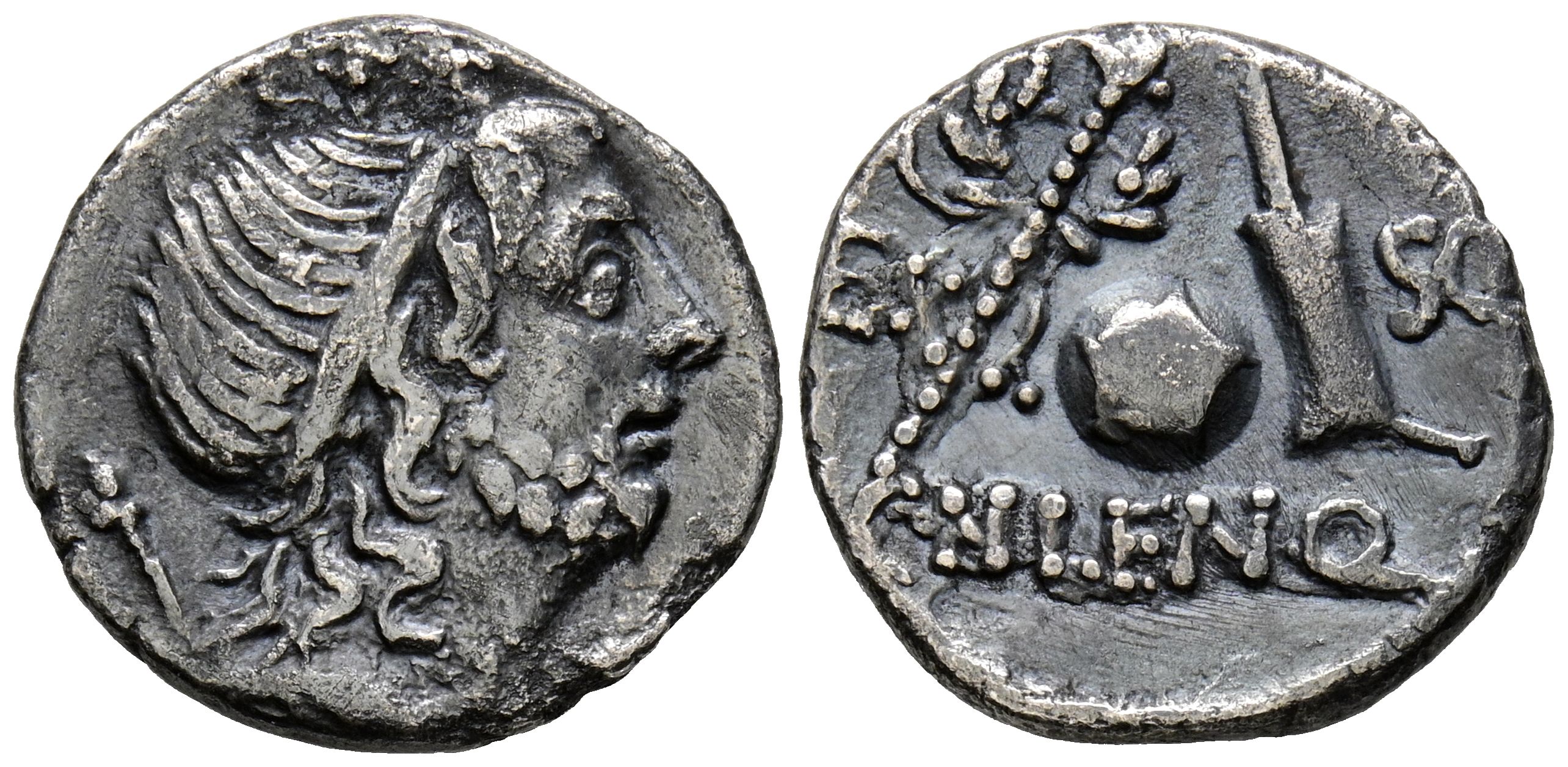 GENS CORNELIA. Denarius. (Ar. 3.50g/18mm). 76-75 BC Hispania. (Crawford 393/1; FFC 627). Anv: Diademed bust of the Genius of the Roman people to the right, scepter behind him, above: GPR. Rev: Terrestrial globe between scepter with laurel wreath and Helm, in field: EX- Uncirculated, below: CN LEN Q. Almost Very Fine.