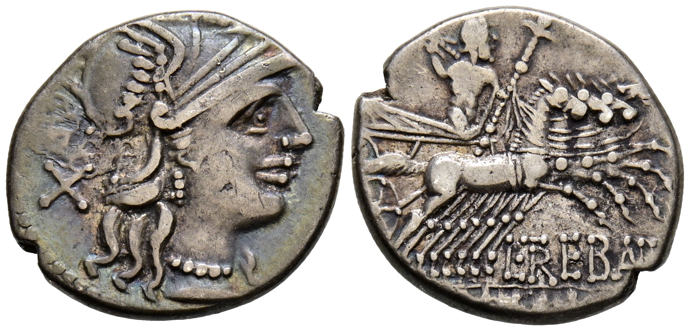 GENS TREBANIA. Denarius. (Ar. 3.86g/19mm). 135 BC Coinage uncertain. (FFC 1160; Crawford 241/1a). Anv: Head of Rome to the right, behind Very Fine.