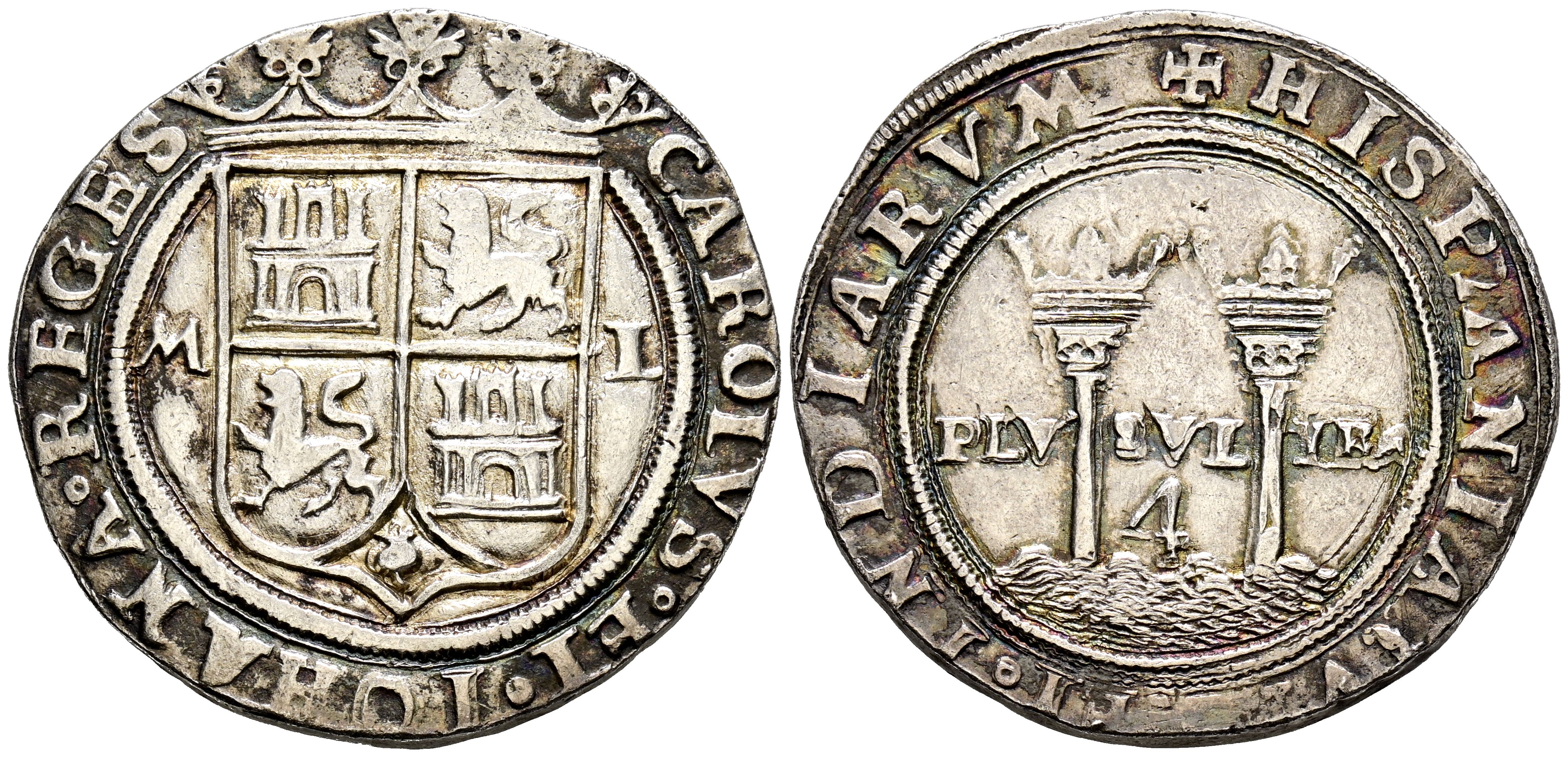 JOAN and CARLOS (1405-1555). 4 Reales. (Ar. 13.44g/32mm). Mexico ML. (Cal-2019-135). Good Very Fine. Nice and rare specimen.