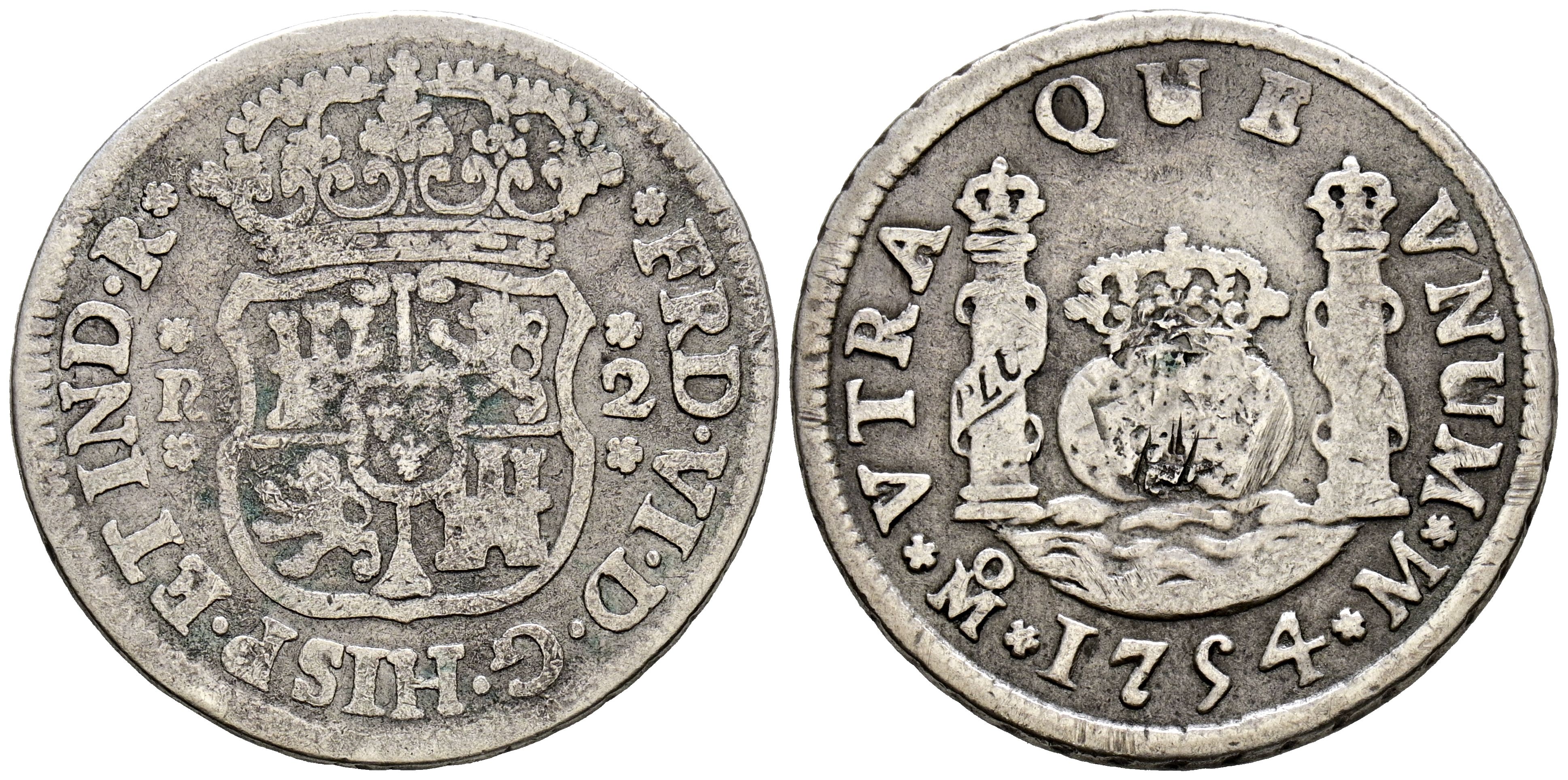 FERDINAND VI (1746-1759). 2 Reales. (Ar. 6.21g/ 27mm). 1754. México M. (Cal-2019-295). Good Fine.