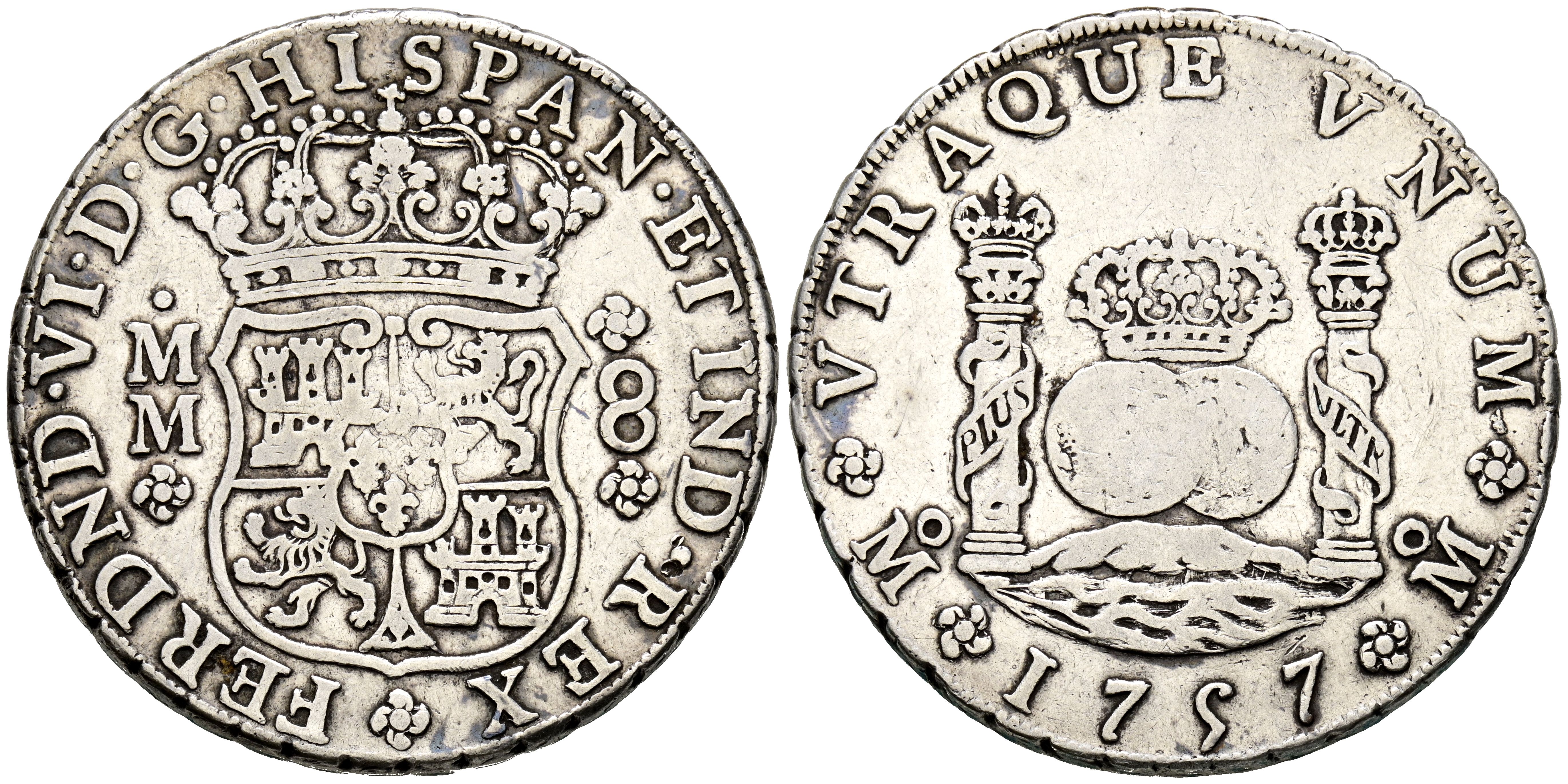 English FERDINAND VI (1746-1759). 8 Reales. (Ar. 26.27g/39mm). 1757. Mexico MM. (Cal-2019-493). Good Fine. Cleaned.