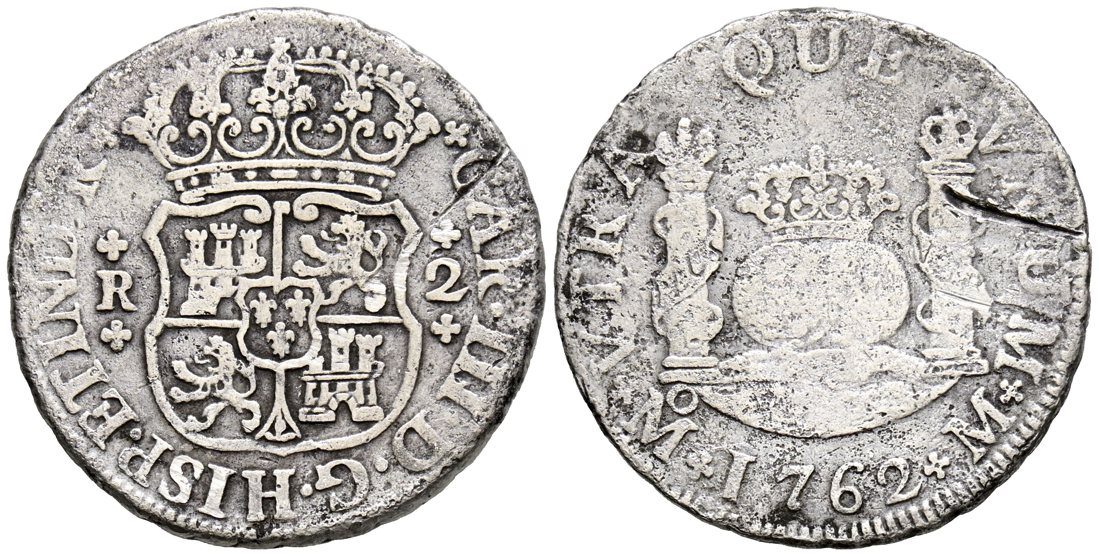 CARLOS III (1759-1788). 2 Reales. (Ar. 6.51g/26mm). 1762. México M. (Cal-2019-645). Fine
