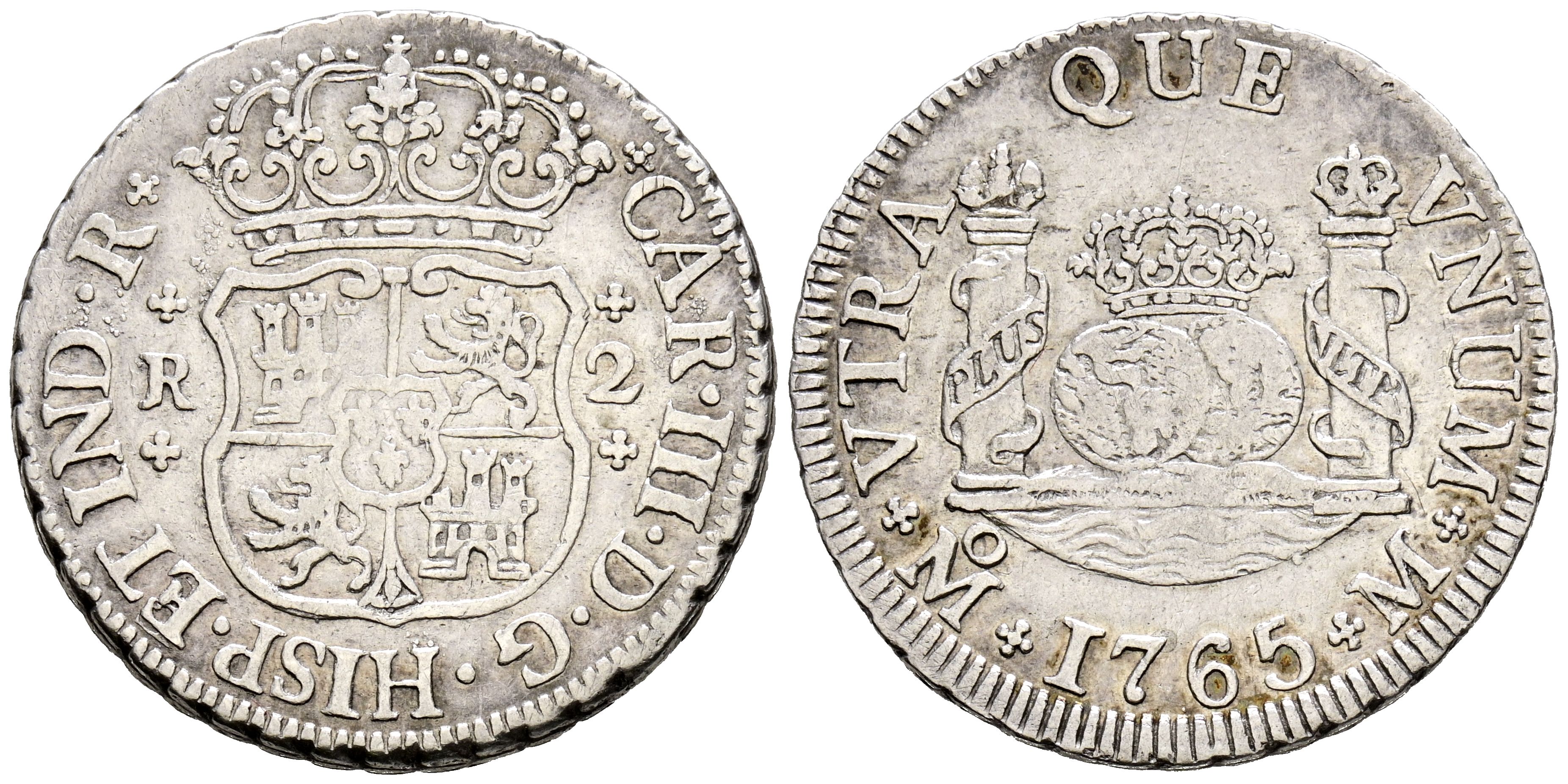 CARLOS III (1700-1746). 2 Reales (Ar. 6.71g/26mm). 1765. Mexico M. (Cal-2019-649). Good Very Fine.