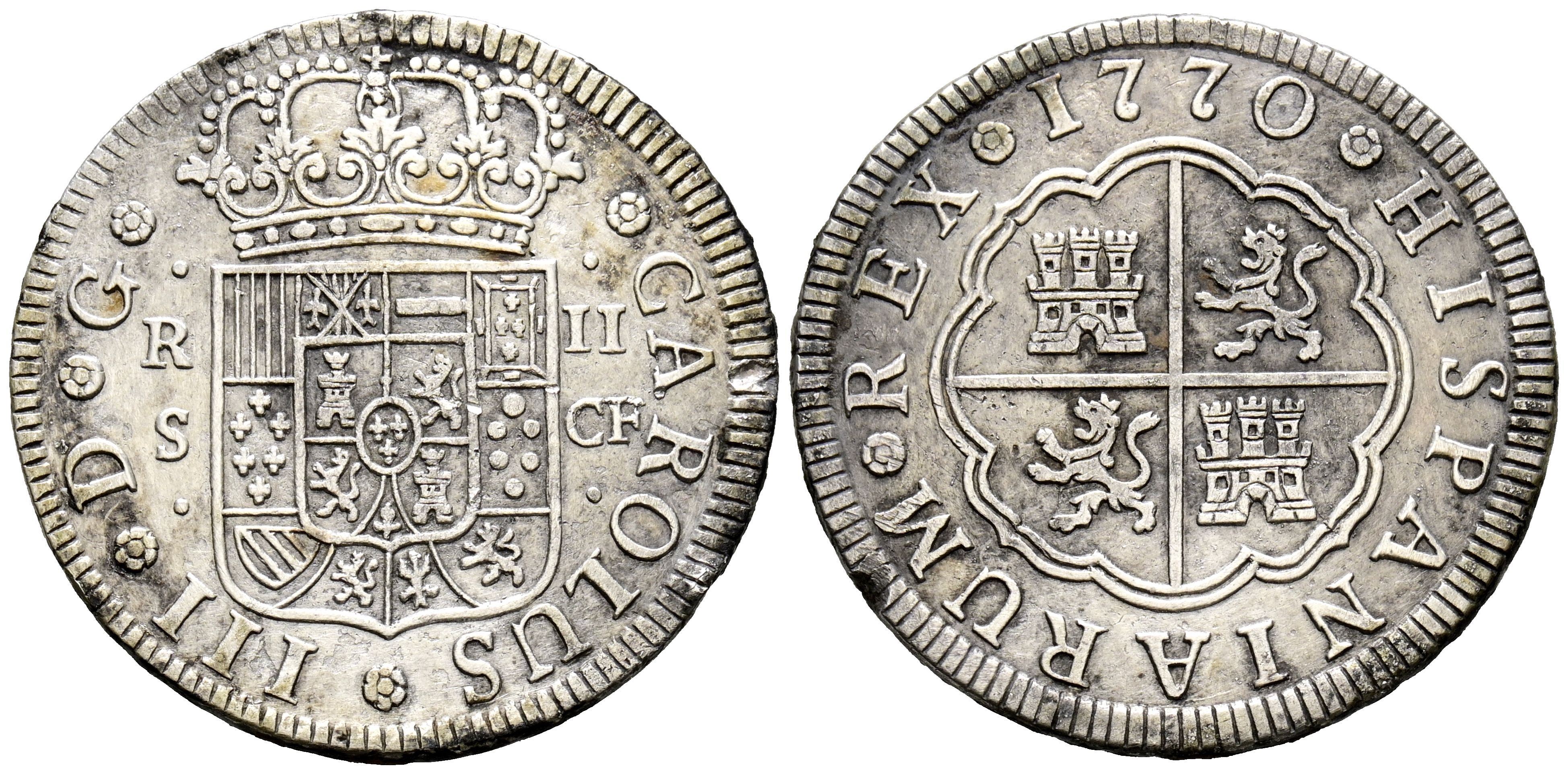 CARLOS III (1759-1788). 2 Reales (Ar. 5.71g/27mm). 1770. Sevilla CF. (Cal-2019-779). Good Very Fine. Patina.