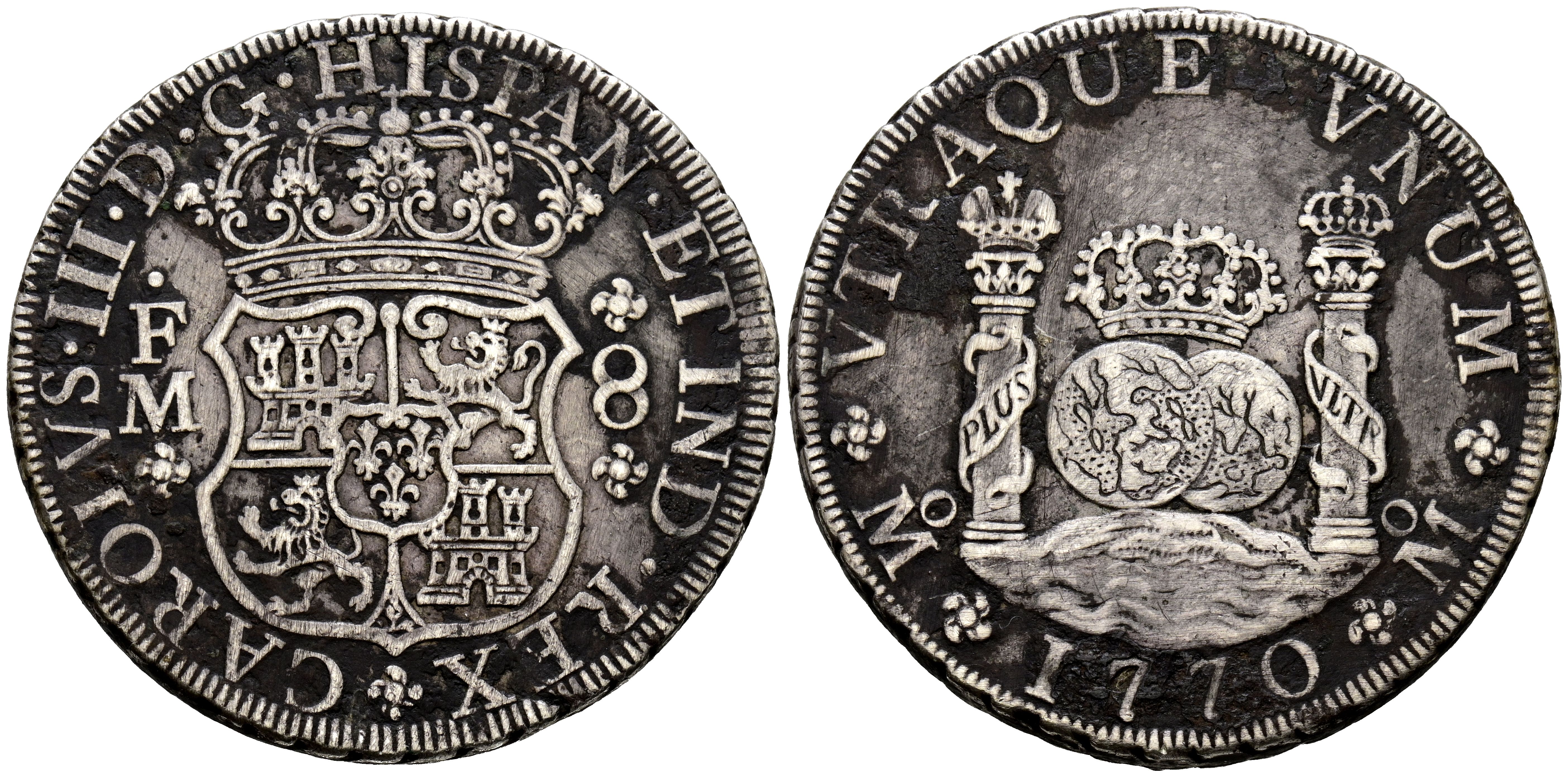 CARLOS III (1759-1788). 8 Reales. (Ar. 26.43g/39mm). 1770. Mexico MF. (Cal-2019-1099). Almost Very Fine.