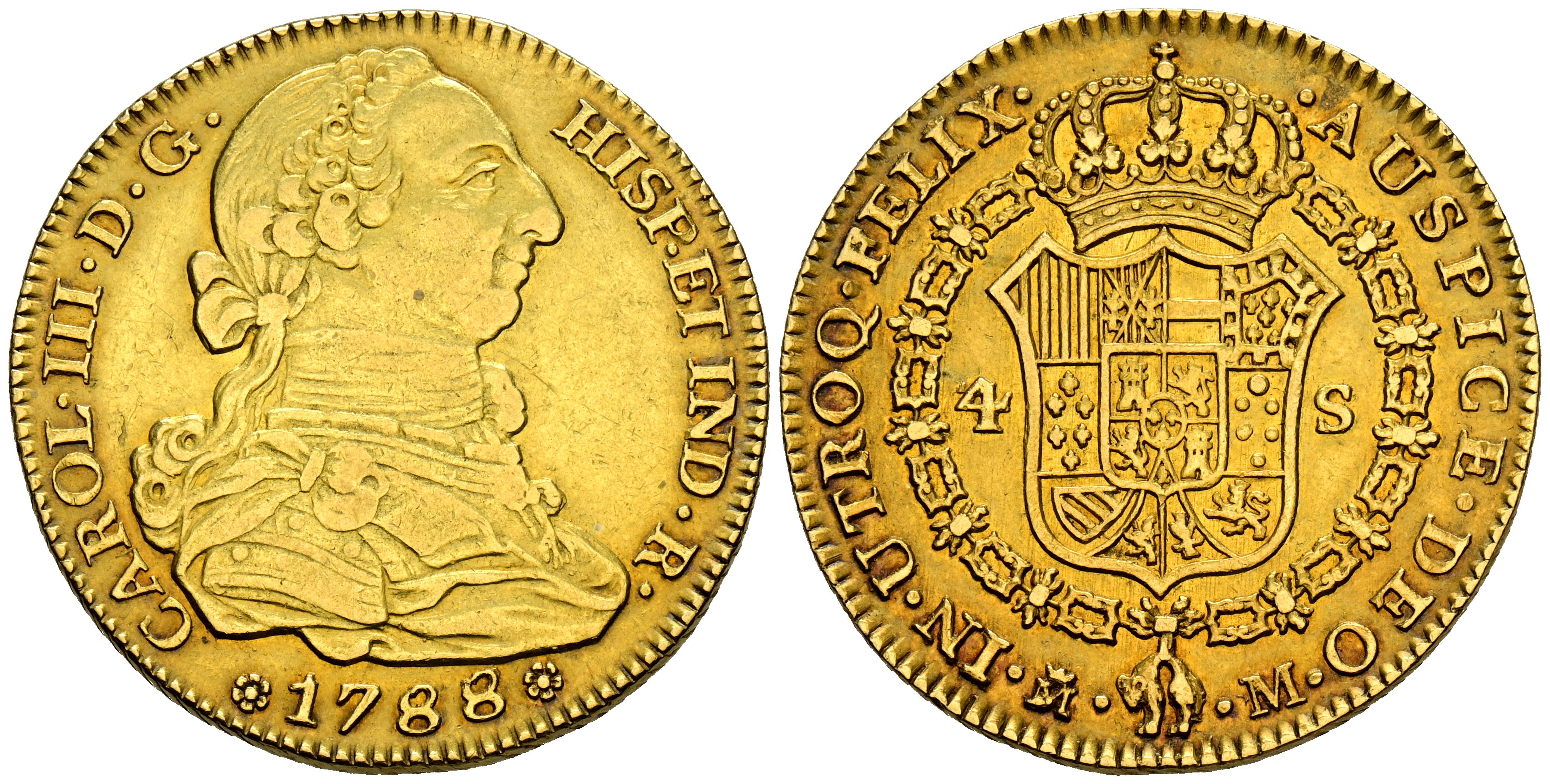 CARLOS III (1759-1788). 4 Escudos. (Au. 13.44g/29mm). 1788/7. Madrid M. (Cal-2019-1794). Good Very Fine. Nice tone.