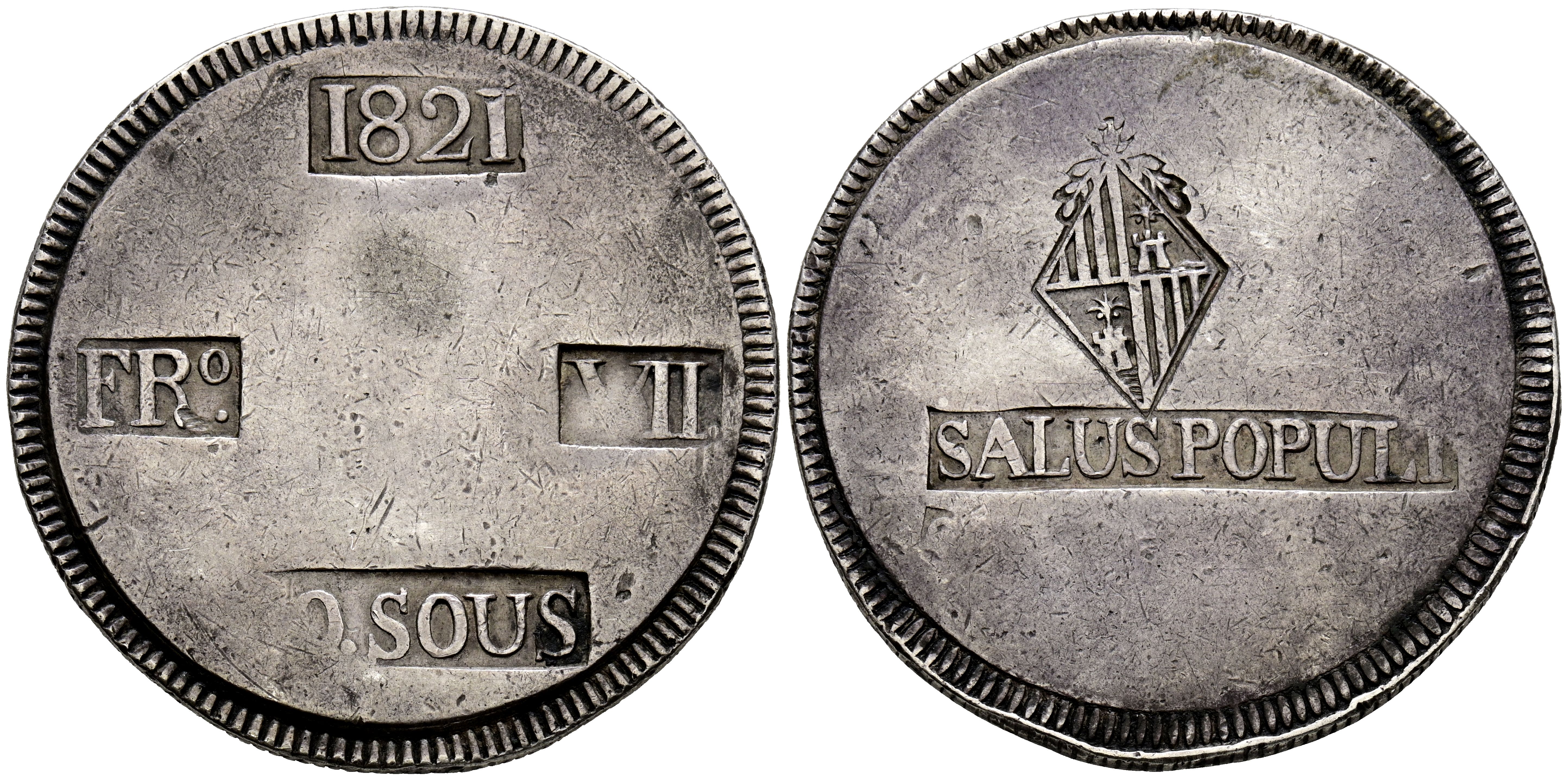 FERDINAND VII (1808-1833). 30 Sous. (Ar. 26.52g /41mm). 1821. Mallorca. (Cal-2019-1293). Good Very Fine.