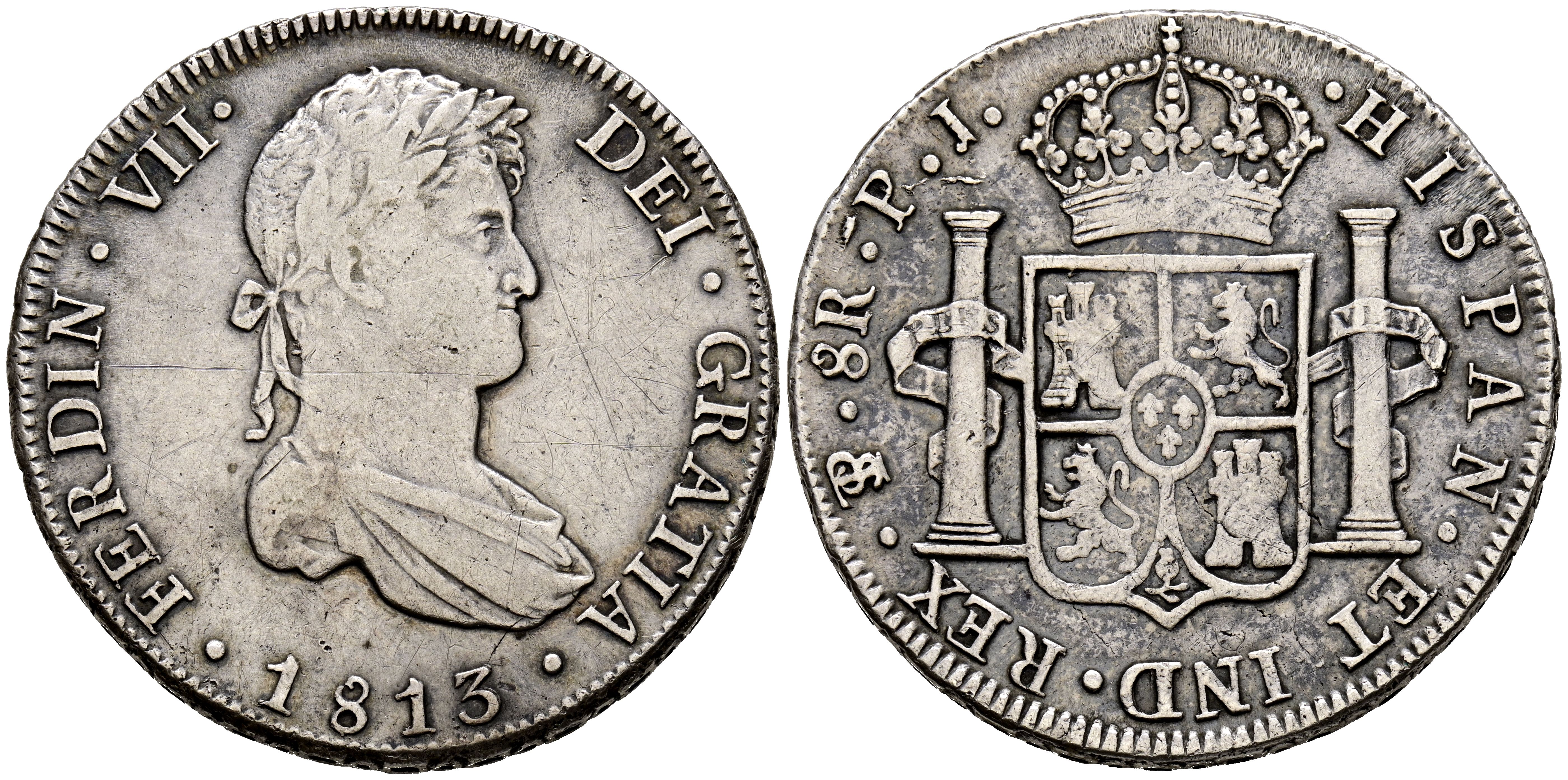 FERDINAND VII (1808-1833). 8 Reales. (Ar. 26.88g/39mm). 1813. Potosí PJ. (Cal-2019-1375). Almost Very Fine.