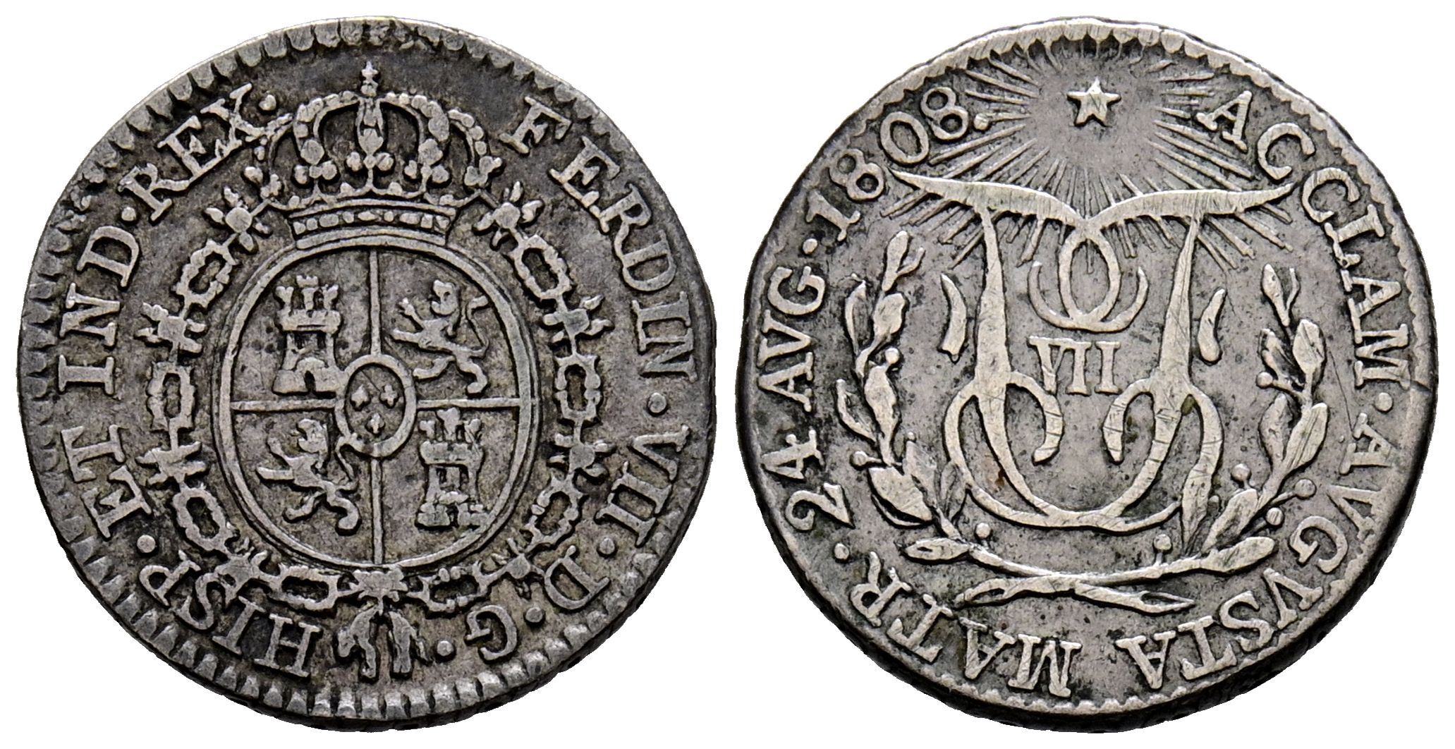 FERDINAND VII (1808-1833). Proclamation in Madrid (Ar. 1.49g/14mm). 1808. Module of 1/2 Real. (Ha. 4). Good Very Fine. Nice tone.