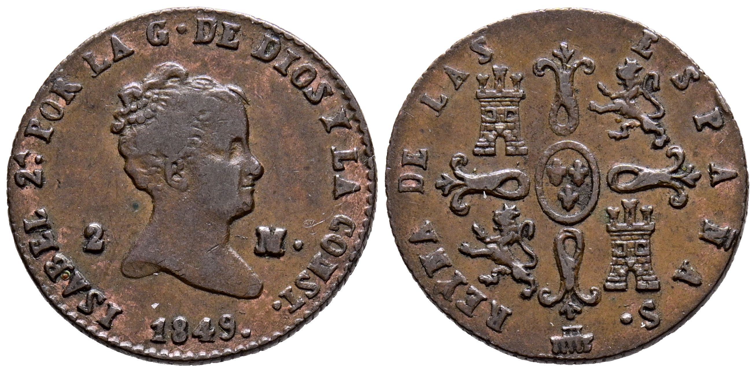 ELIZABETH II (1833-1868). 2 Maravedis. (Ae. 2.20g/18mm). 1849. Segovia. (Cal-2019-61). Very Fine/ Good Very Fine