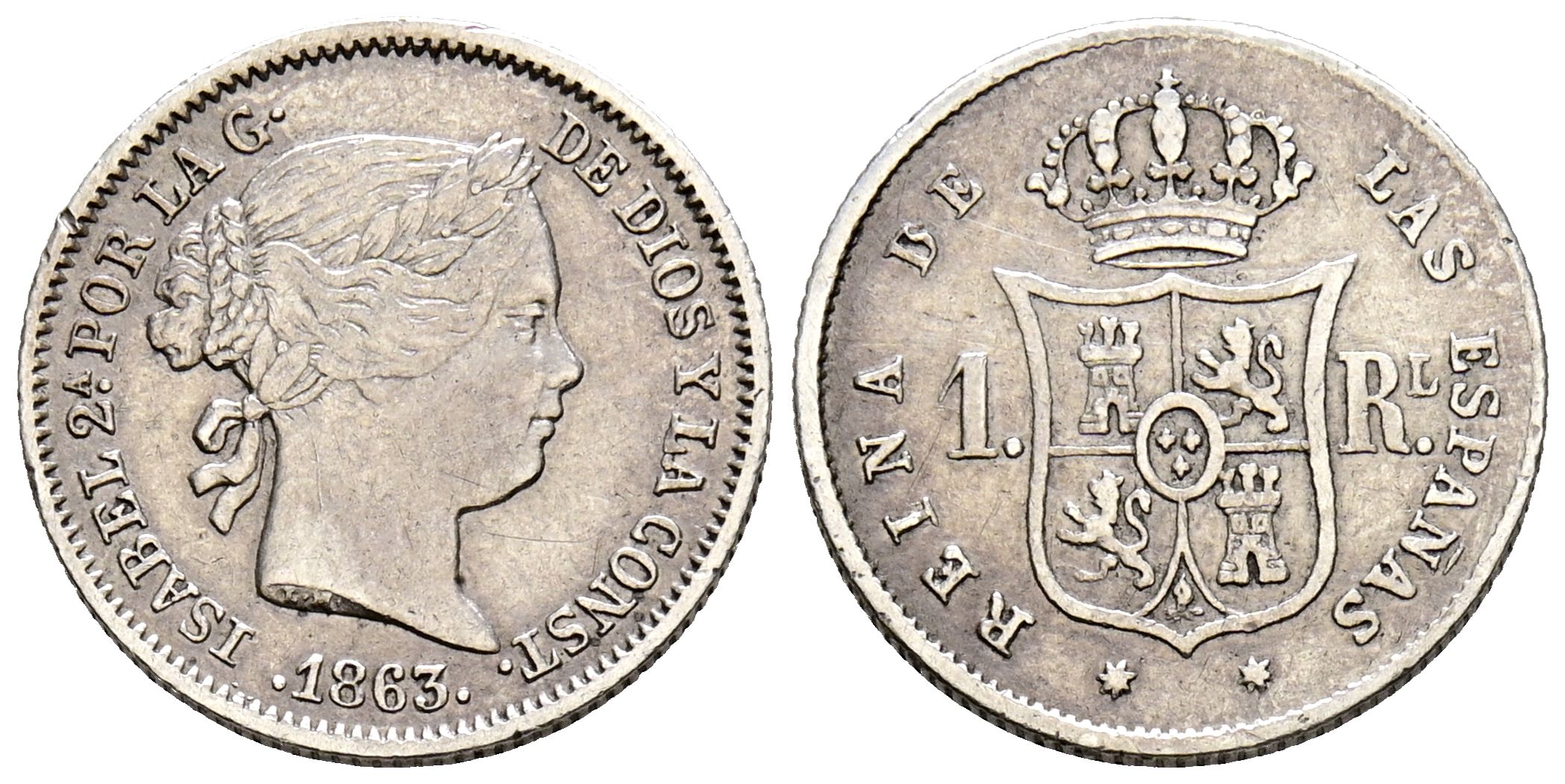ISABEL II (1833-1868). 1 Real. (Ar. 1,25g/15mm). 1863. Sevilla. (Cal-2019-336). MBC+.