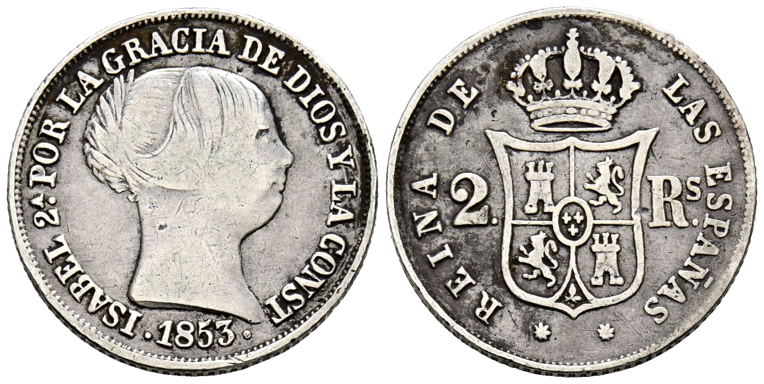 ELIZABETH II (1833-1868). 2 Reales. (Ar. 2.42g/18mm). 1853. Barcelona. (Cal-2019-345). Very Fine. Limited.