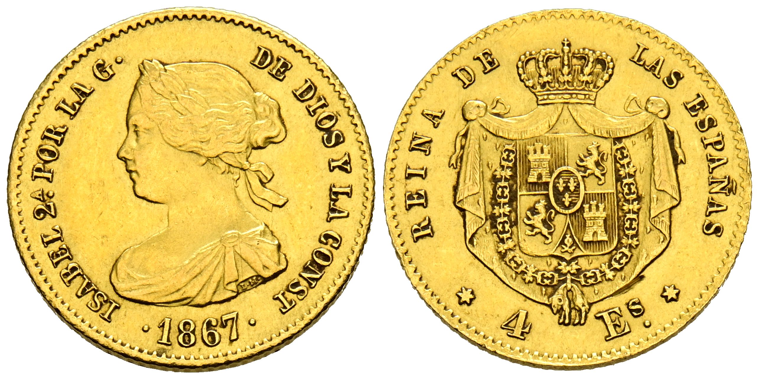 ELIZABETH II (1833-1868). 4 Escudos. (Au. 3.36g/18mm). 1867. Madrid. (Cal-2019-691). Good Very Fine.
