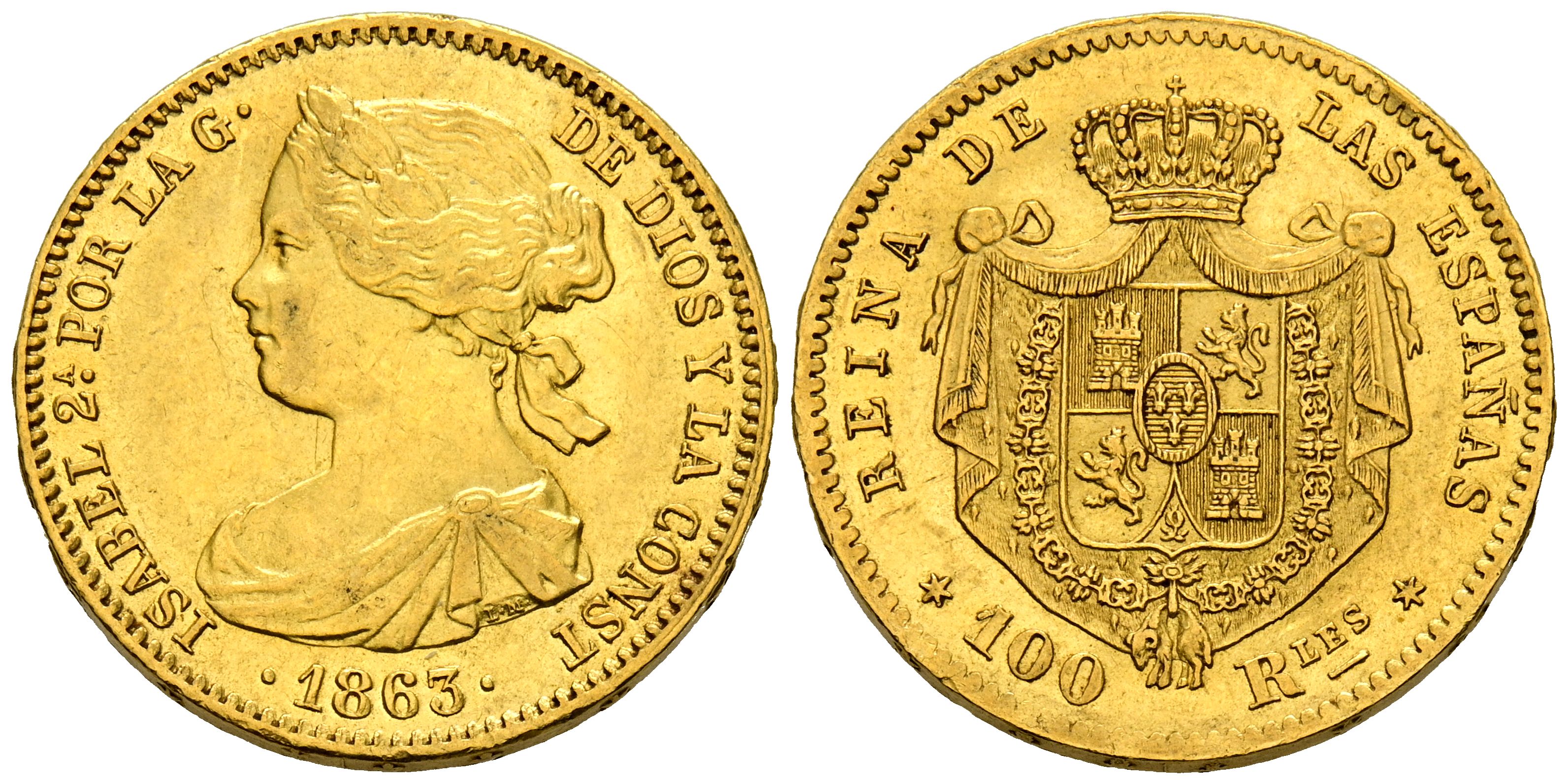 ISABEL II (1833-1868). 100 Reales. (Au. 8,39g/22mm). 1863. Madrid. (Cal-2019-790). EBC.