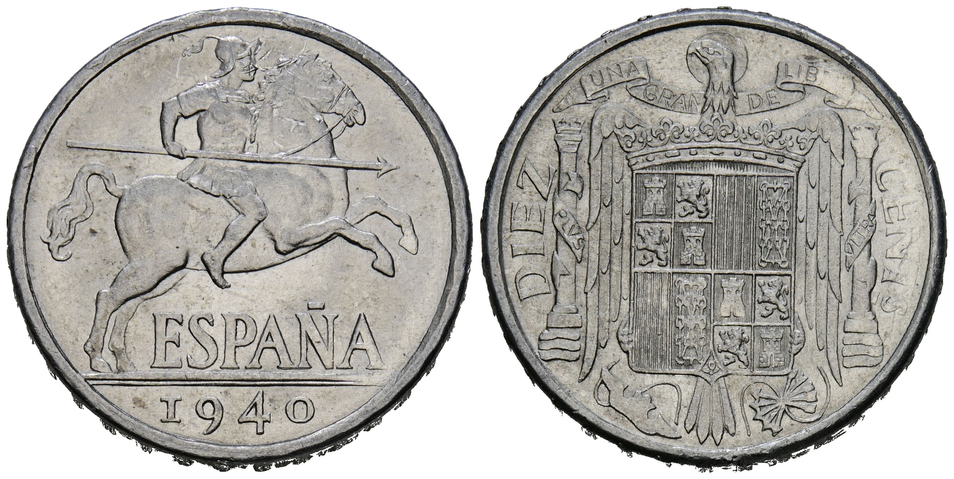 ESTADO ESPAÑOL (1936-1975). 10 Céntimos. (Al. 1,87g/23mm). 1940. Madrid. (Cal-2019-6). PLVS. SC-. Leves marquitas en anverso. Brillo original.