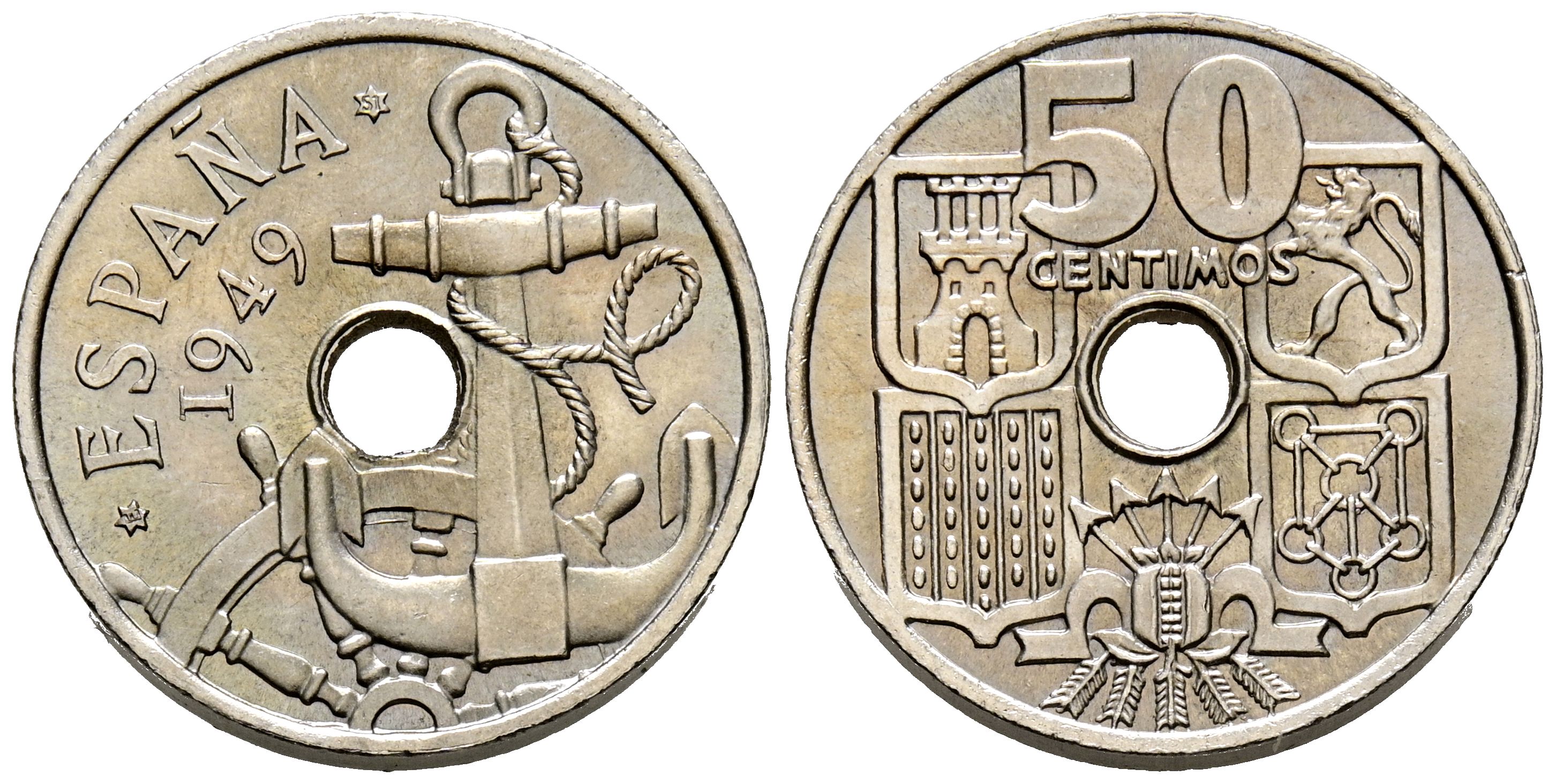 SPANISH STATE (1936-1975). 50 Cents. (Cu-Ni. 3.93g/20mm). 1949 *E-51. Madrid. II National Numismatic Exhibition. (Cal-2019-151). Uncirculated. Limited.