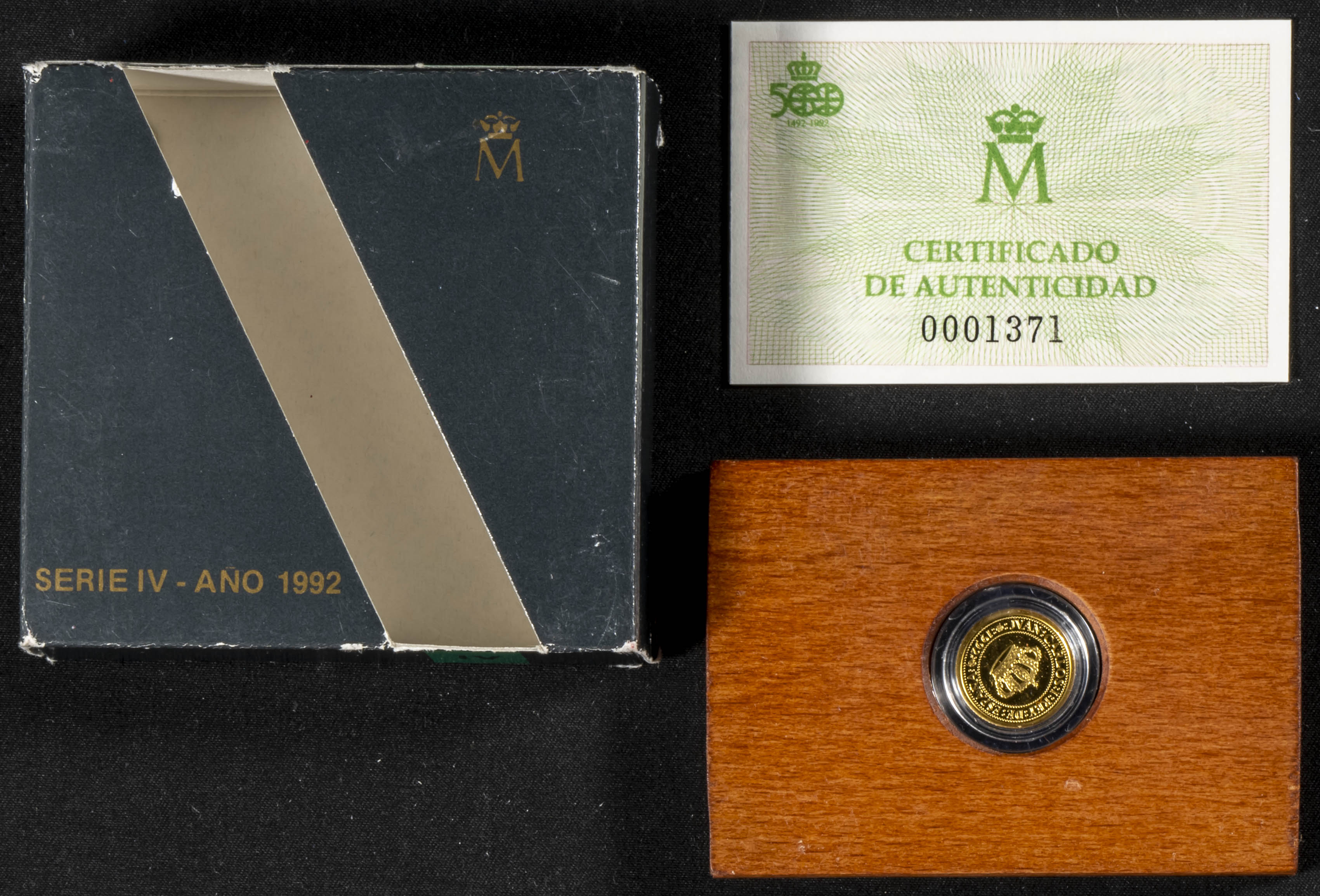 JUAN CARLOS I (1975-2014). 5.000 Pesetas. (Au. 1,68g/15mm). Serie IV. Quinto Centenario. 1992. FNMT. FDC. Presentada en estuche oficial y con certificado de autenticidad.