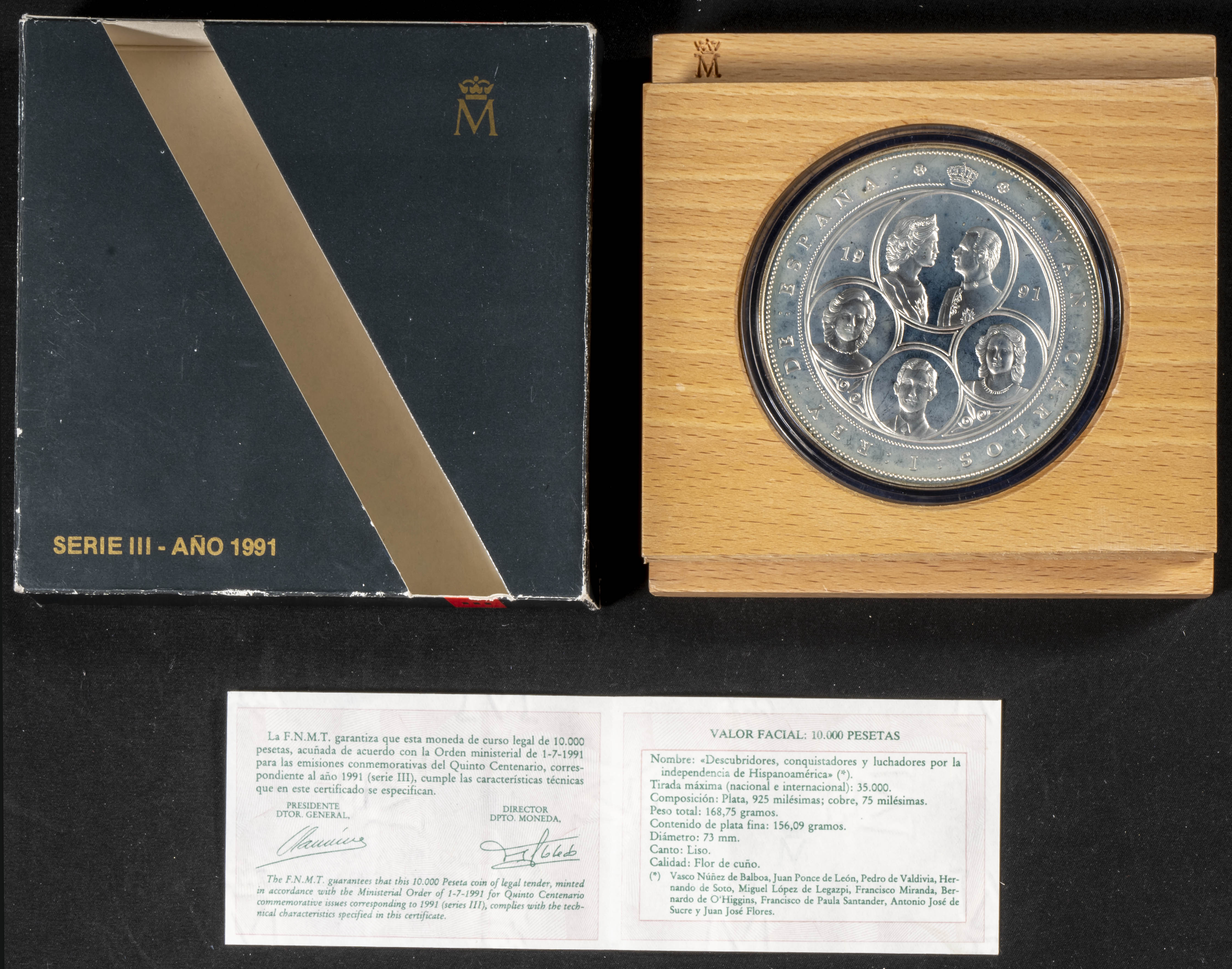 JUAN CARLOS I (1975-2014). 10.000 Pesetas. (Ar. 168,75g/73mm). V Centenario. Descubridores y Conquistadores 1991. Serie III. FDC. Presentada en estuche oficial con certificado de autenticidad.