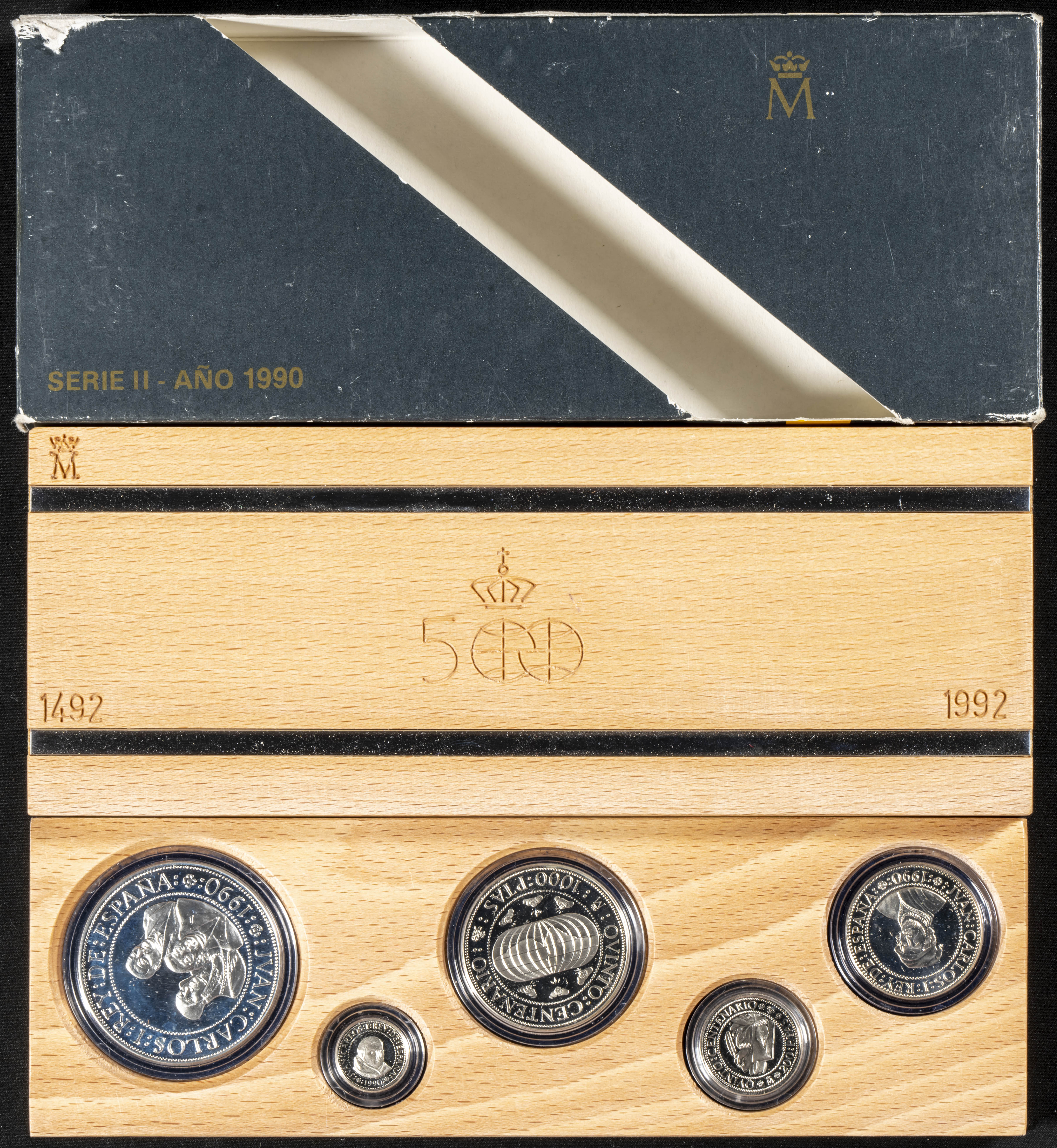 English JUAN CARLOS I (1975-2014). Complete case consisting of 5 silver coins with values ​​between 100 and 2000 Pesetas. Fifth centenary. 1990. Series II. FNMT. FDC. Includes original case (without certificate of authenticity).