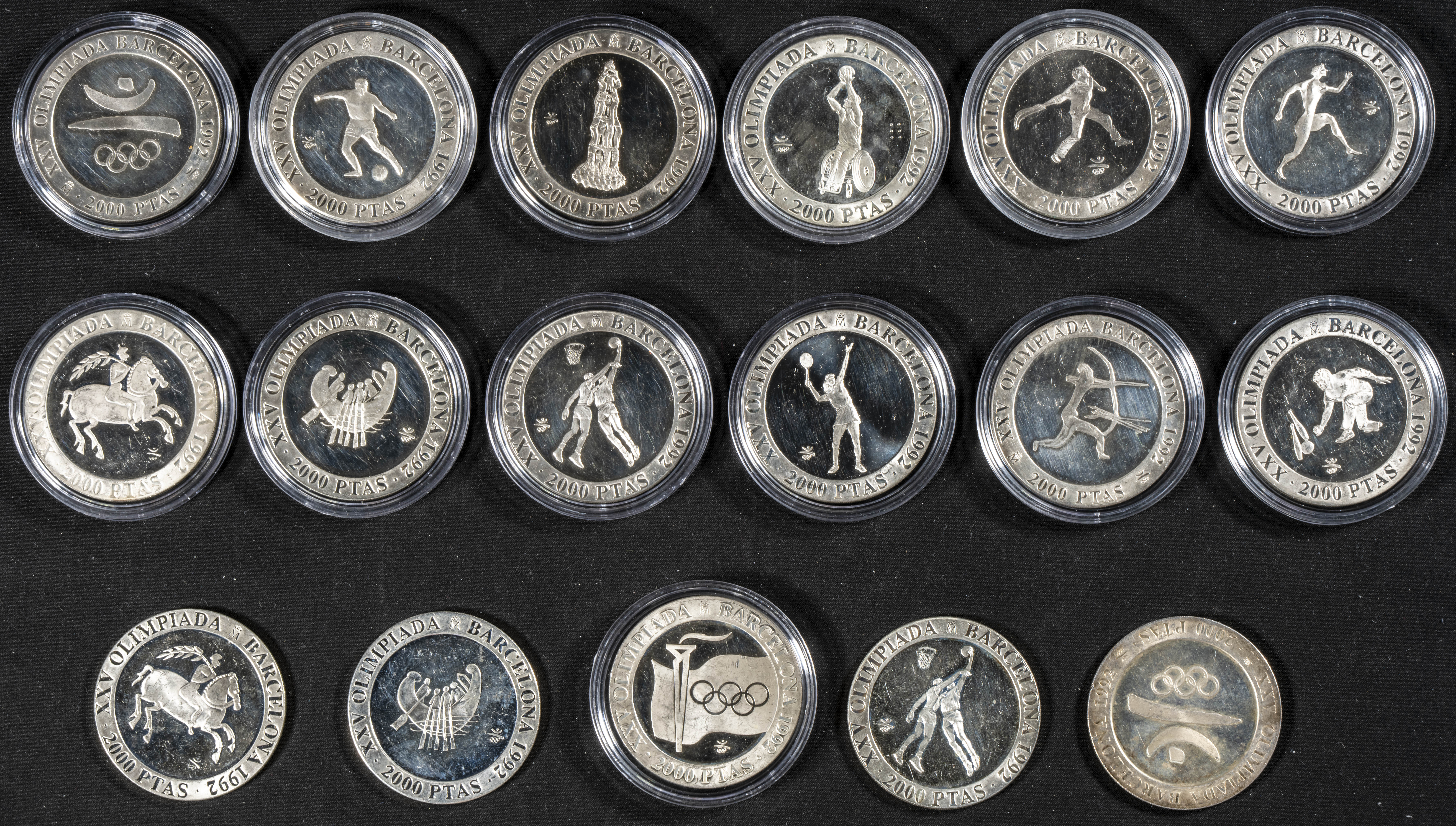 JUAN CARLOS I (1975-2014). Conjunto de 24 monedas de plata 2000 Pesetas de la Serie de las Olimpiadas de Barcelona´92 y Quinto Centenario. 1989, 1990 y 1991. FNMT. Gran cantidad de piezas diferentes. Buen estado de conservación general. A EXAMINAR.