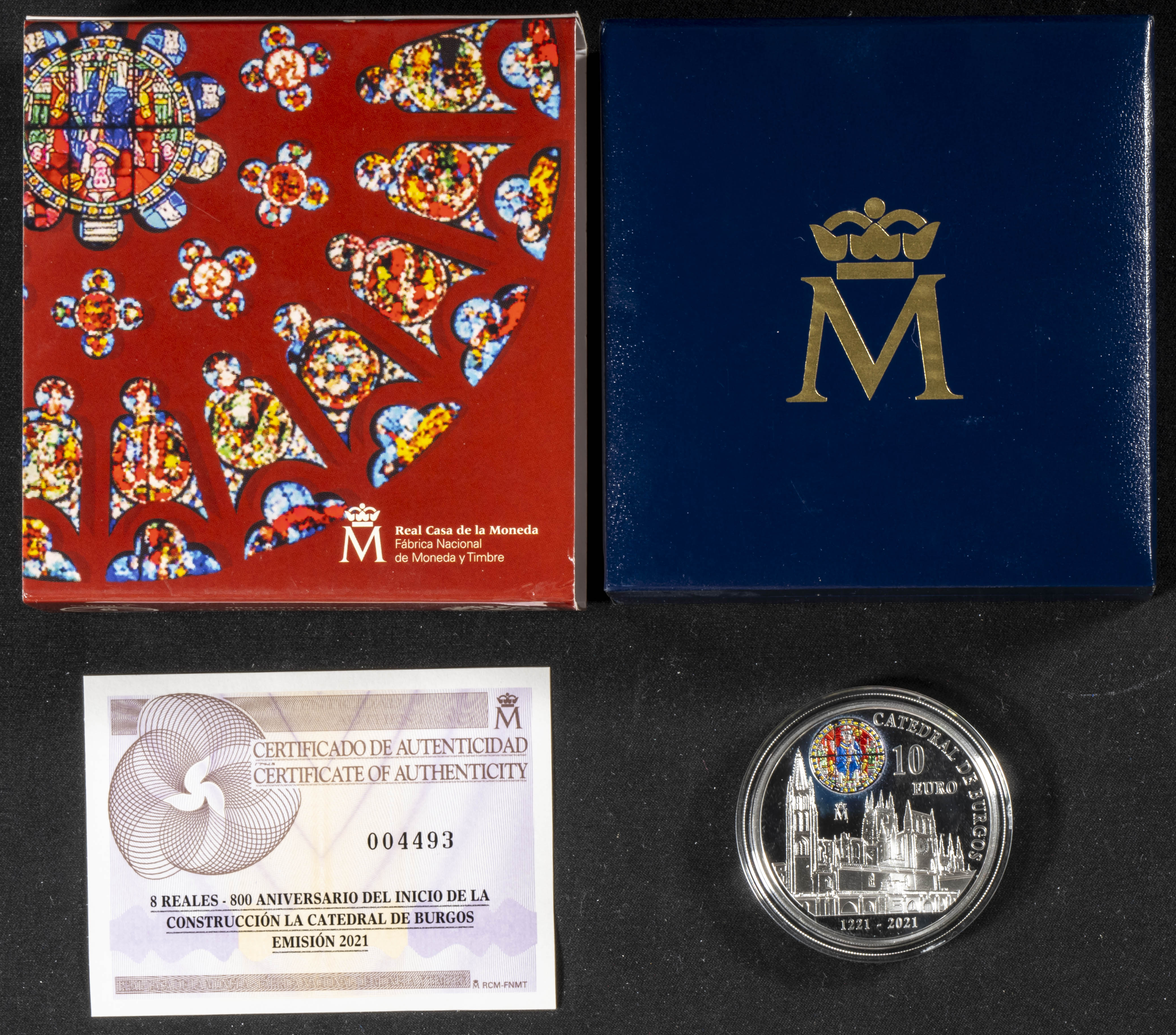 FELIPE VI (2014-?). 10 Euros. (Ar. 27,00g/40mm). 800 Años de la Catedral de Burgos. 2021. FNMT. PROOF. Incluye estuche original y certificado de autenticidad. Tirada de 6000 unidades.