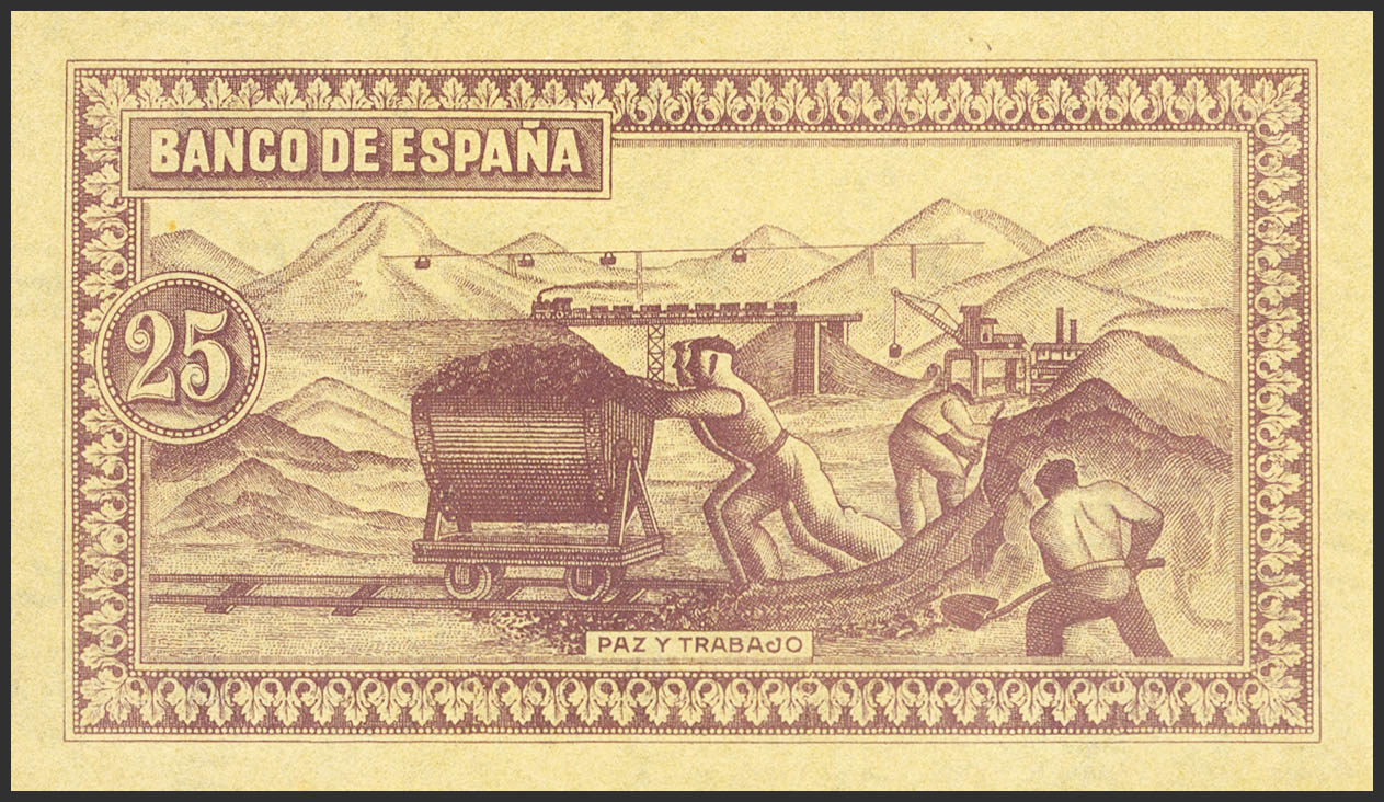 25 Pesetas. September 1937. Not issued (only the reverse of this value is known). Gijón branch. (Edifil 2021: NE29P). Unusual. Uncirculated.