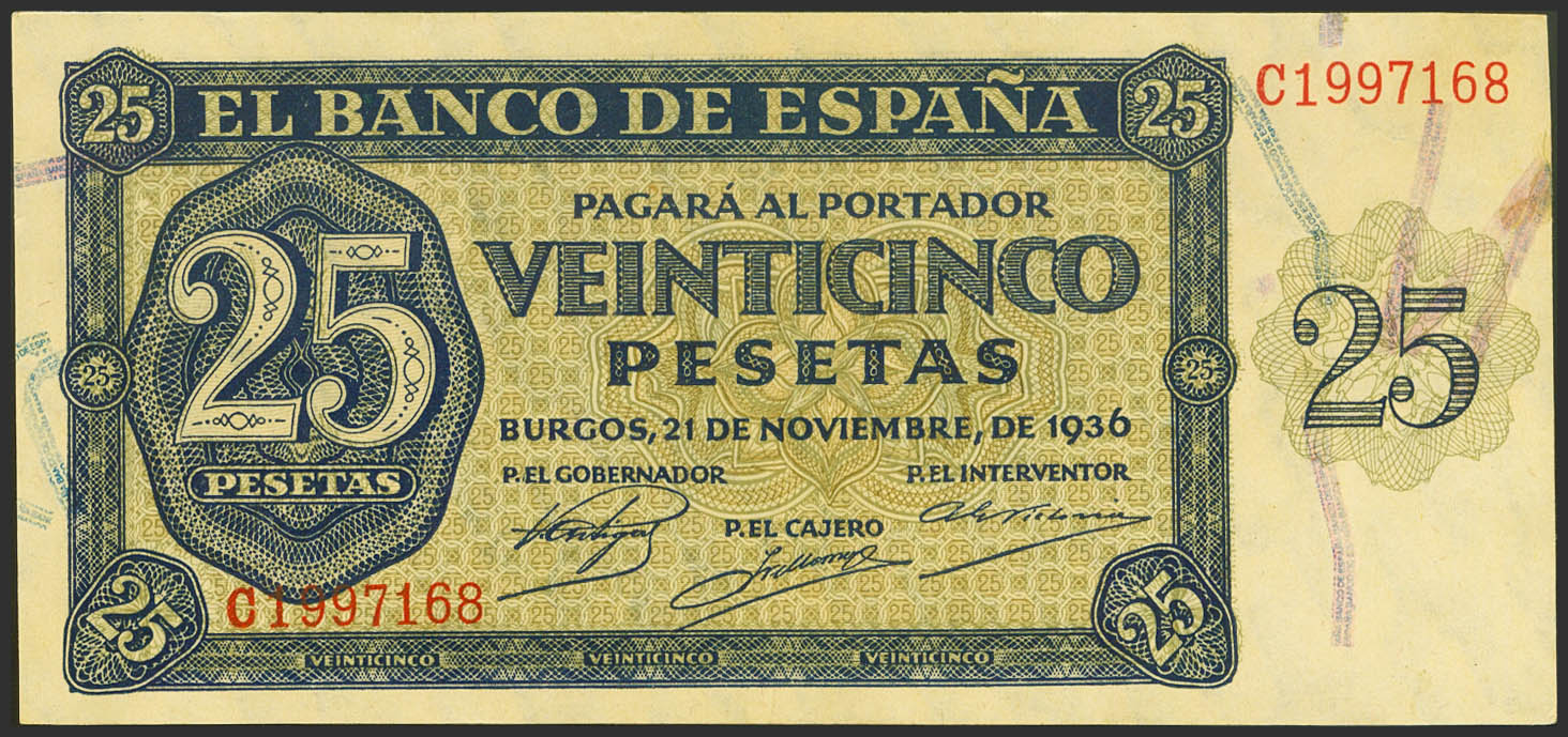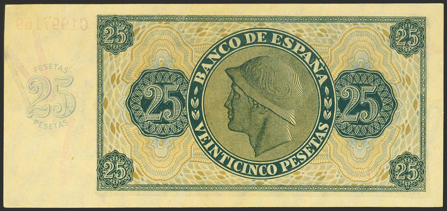 25 Pesetas. November 21, 1936. Series C. (Edifil 2021: 419a). It retains all its original finish. Good Extremely Fine.