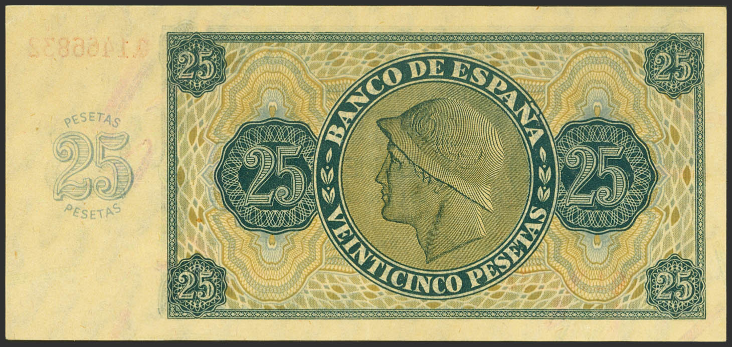25 Pesetas. November 21, 1936. Series Q. (Edifil 2021: 419a). It retains much of its original finish. EBC++.