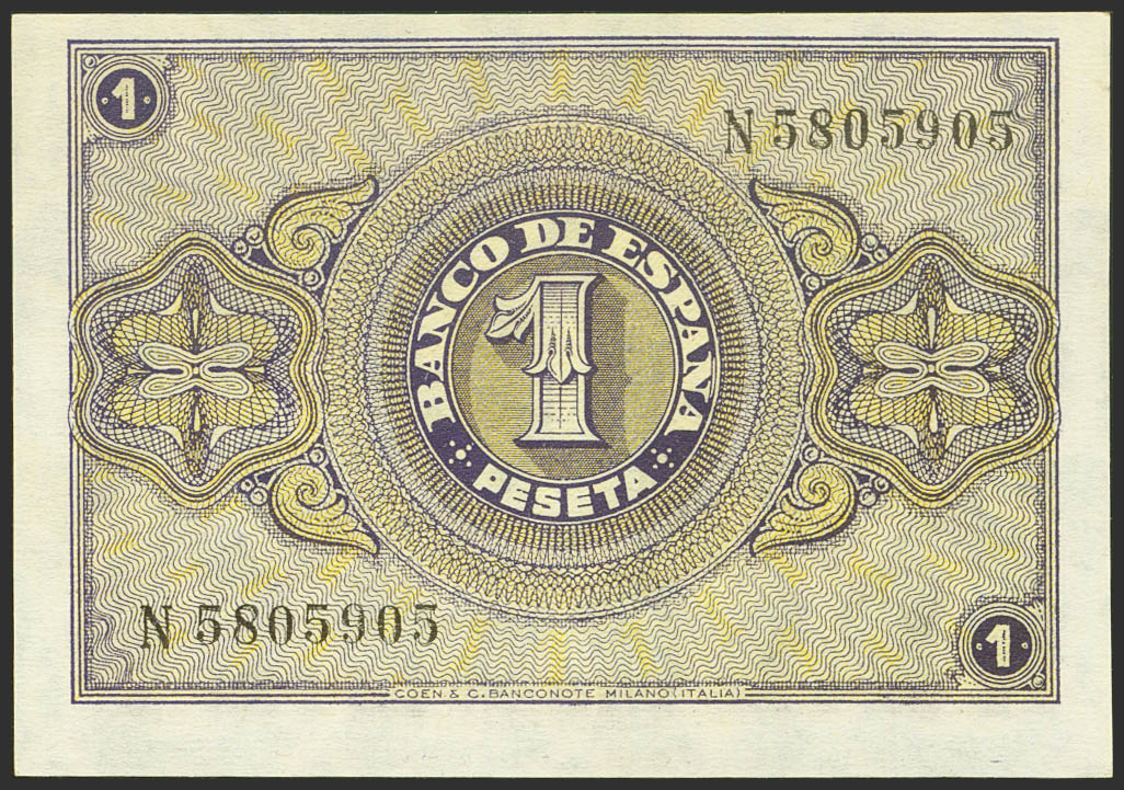 1 Peseta. April 30, 1938. Series N, last series issued. (Edifil 2021: 428b). Original sizing. Uncirculated.