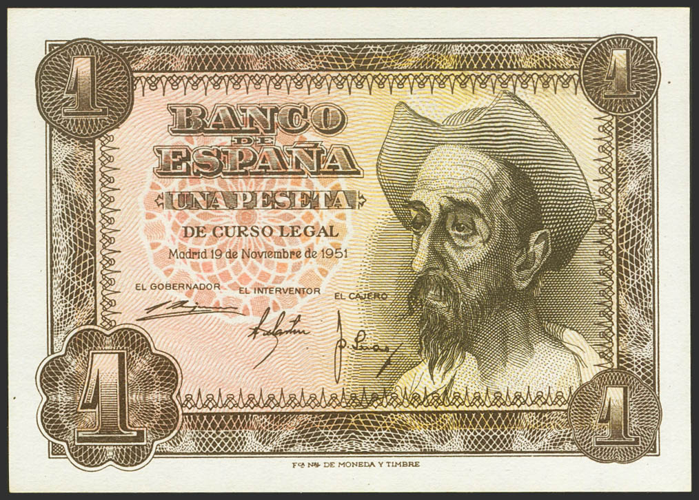 1 Peseta. November 19, 1951. No series. (Edifil 2021: 461). Original sizing. Uncirculated.