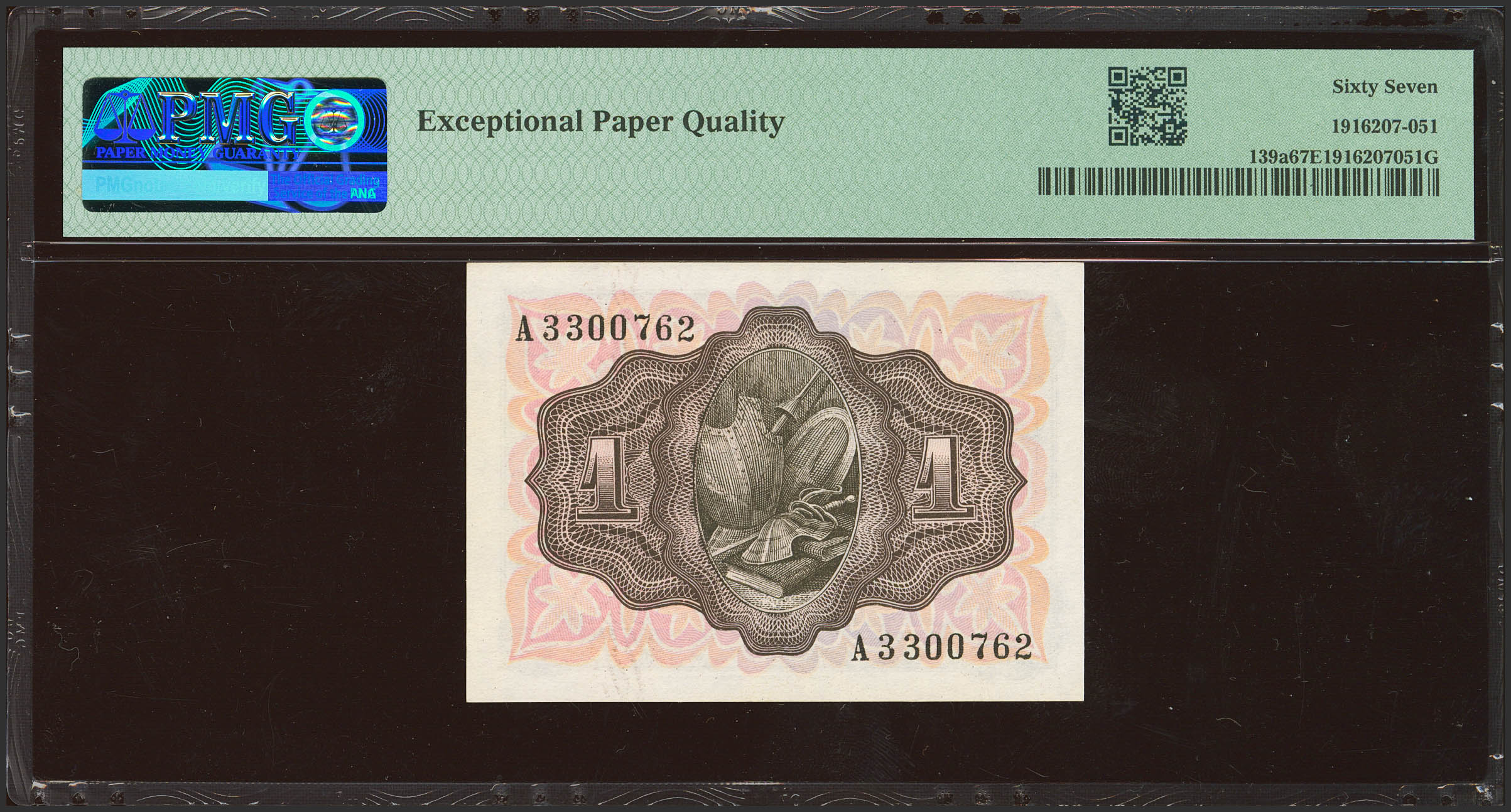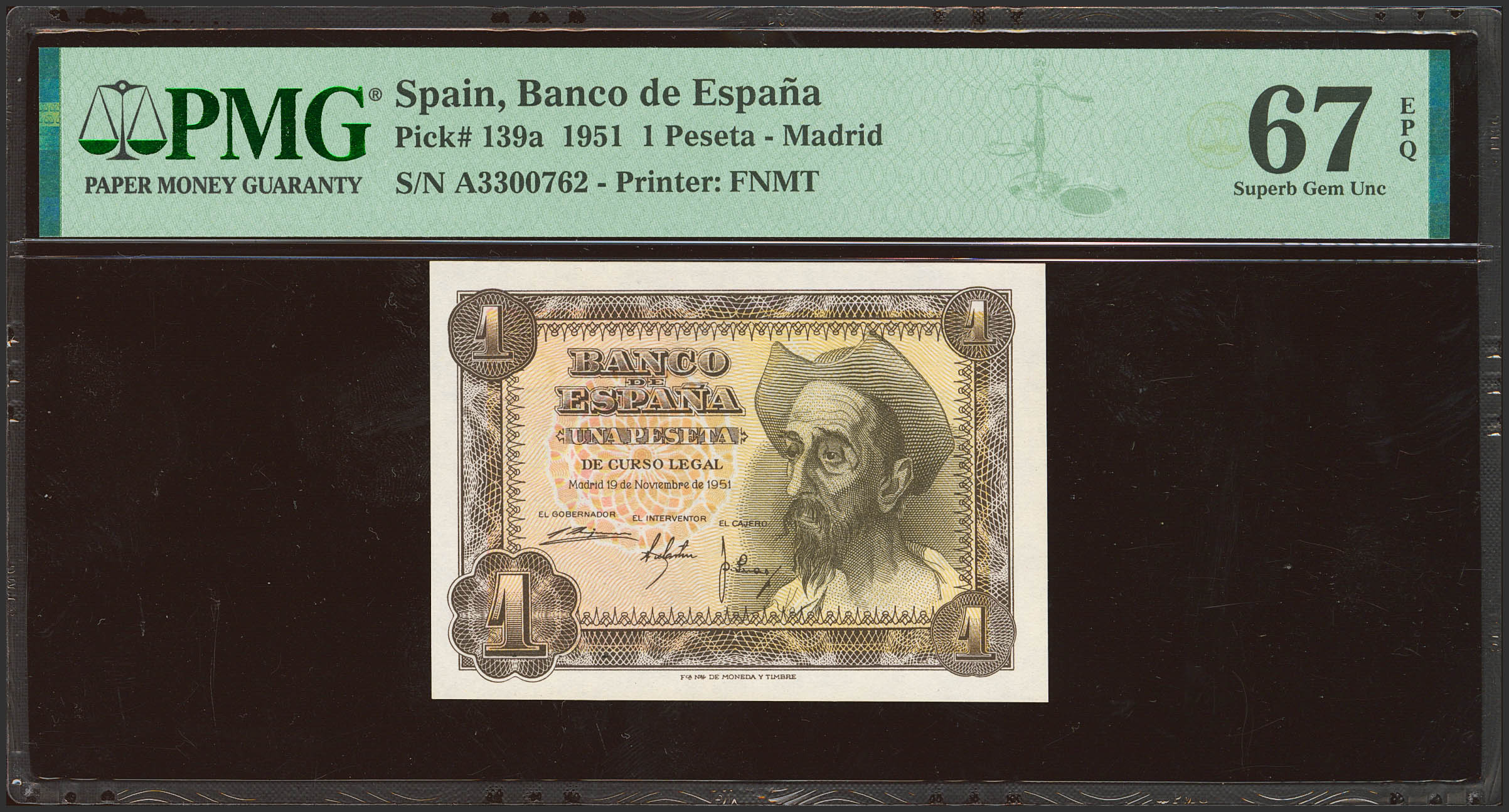 1 Peseta. November 19, 1951. Series A. (Edifil 2023: 461a, Pick: 139a). Original sizing. Uncirculated. PMG67EPQ package.