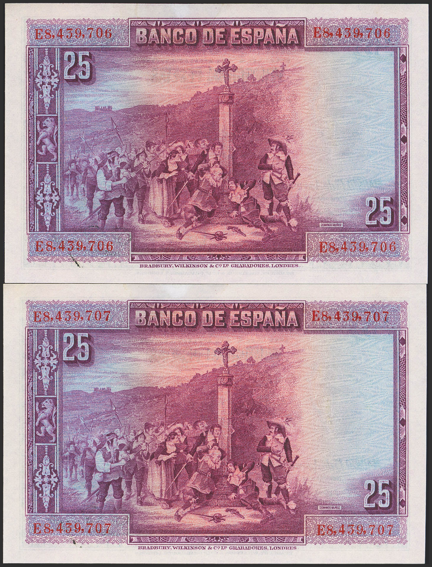 25 Pesetas. August 15, 1928. Correlative couple. Series E. (Edifil 2017: 353). Original sizing. Uncirculated.
