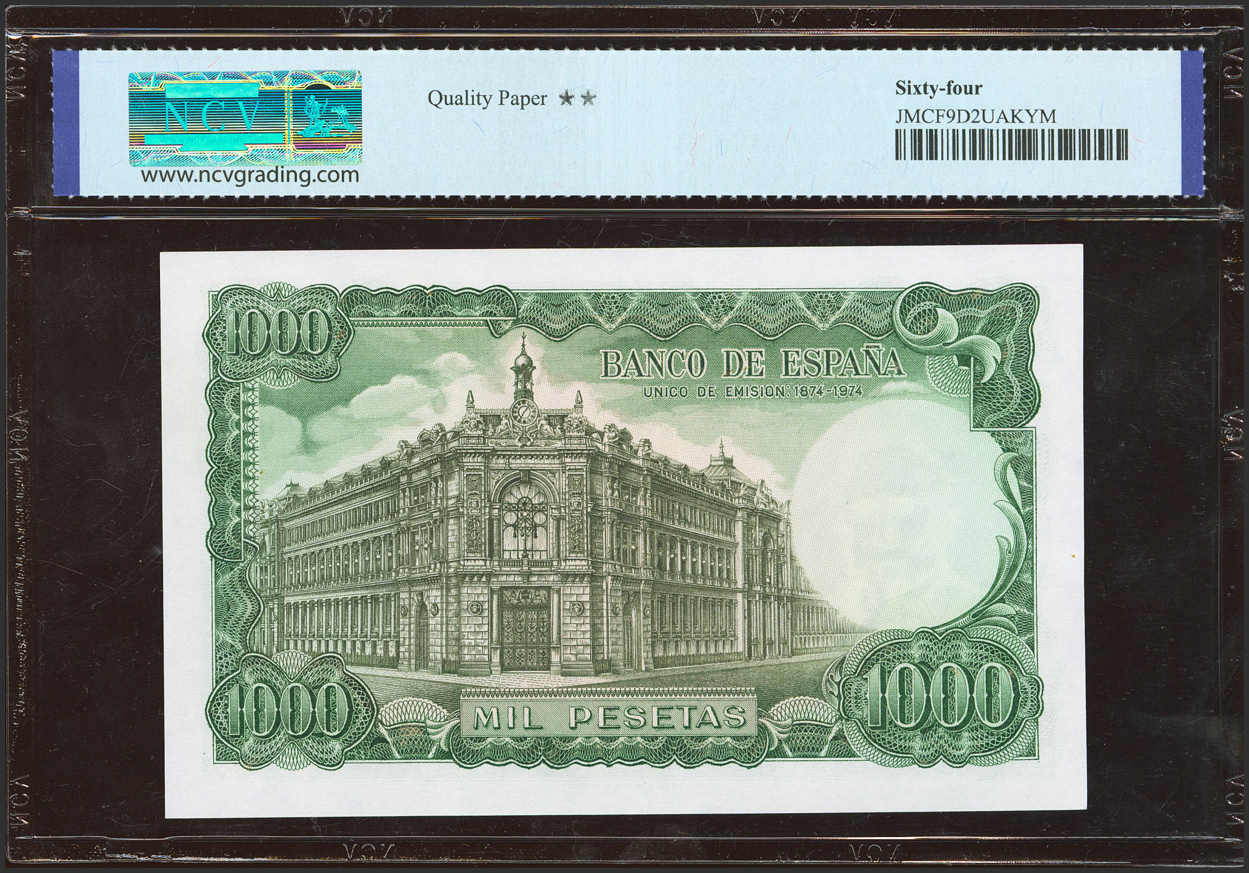 1000 Pesetas. September 17, 1971. No series. (Edifil 2023: 474, Pick: 154). NCV64 encapsulation.