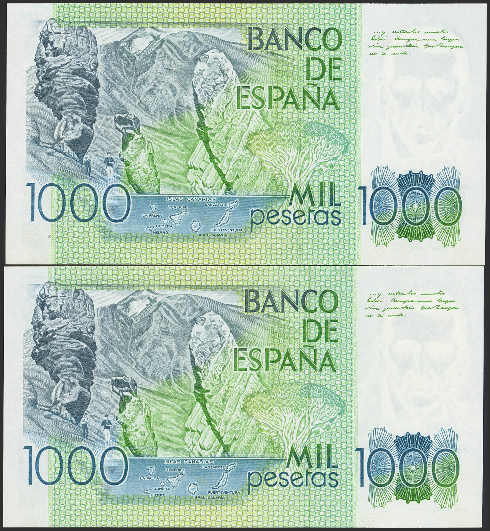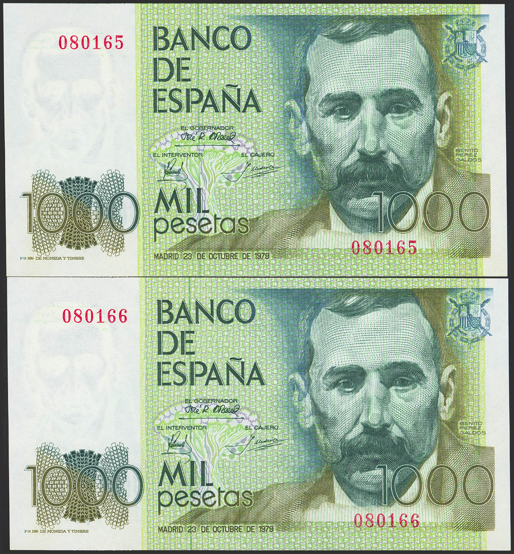 English 1000 Pesetas. October 23, 1979. Correlative couple. No serie. (Edifil 2023: 477). Uncirculated.