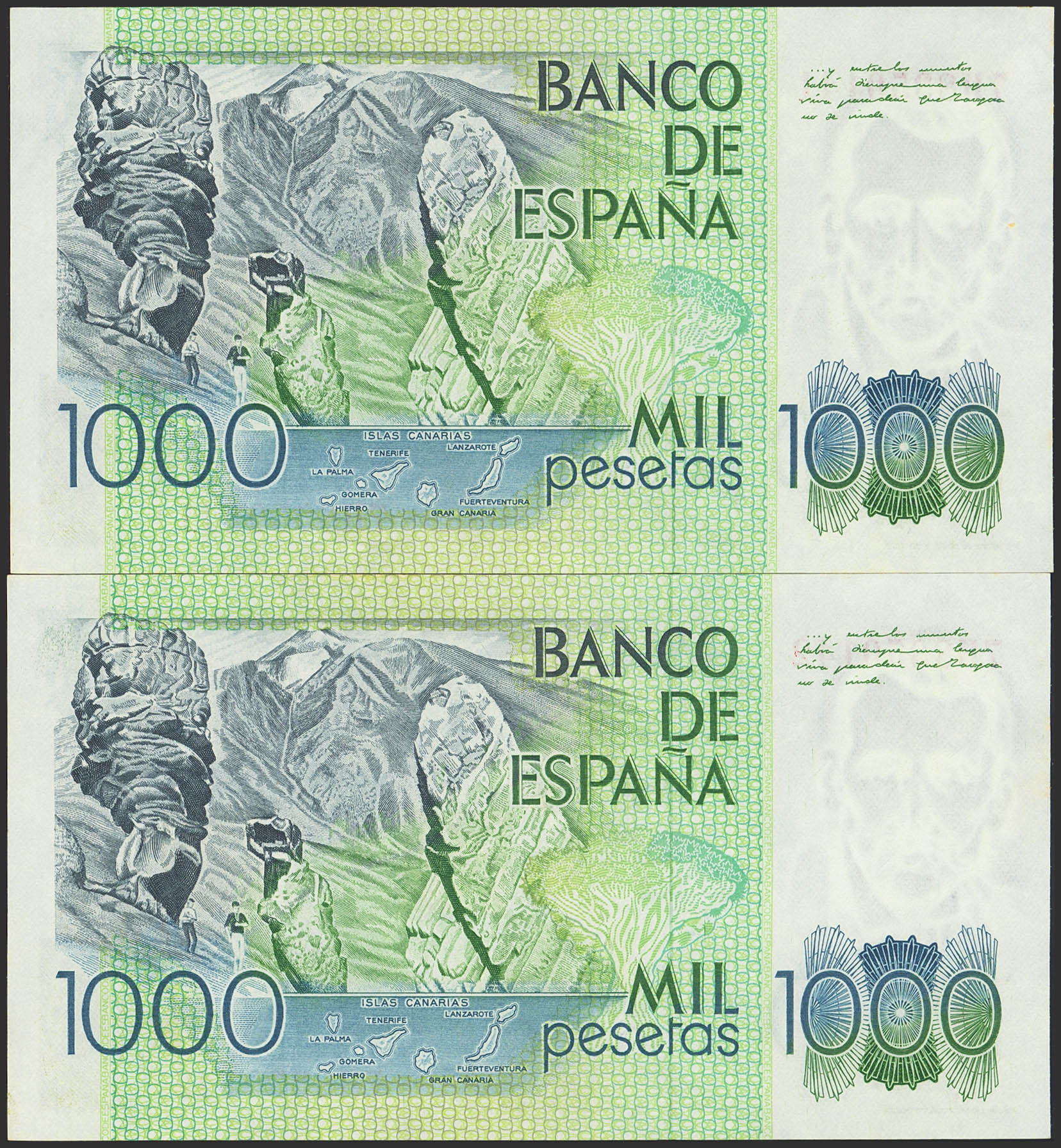 1000 Pesetas. October 23, 1979. Correlative couple. 7H series. (Edifil 2023: 477a). Almost Uncirculated.