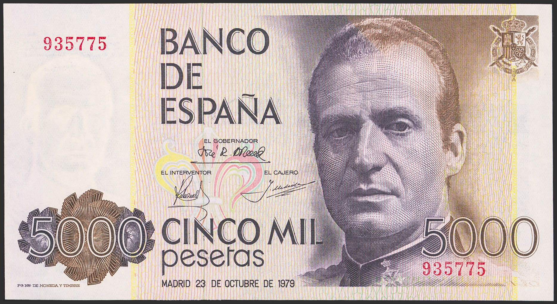 5000 Pesetas. October 23, 1979. No series. (Edifil 2023: 478). Uncirculated.