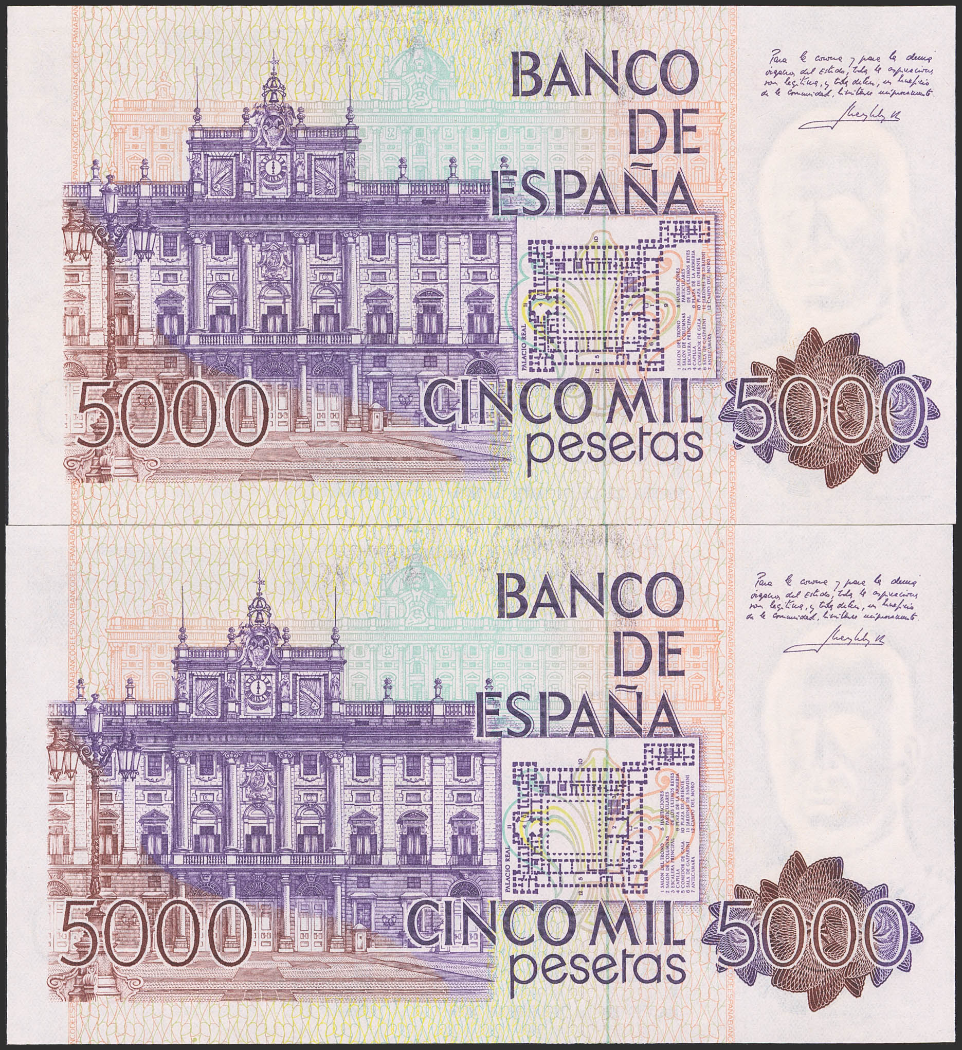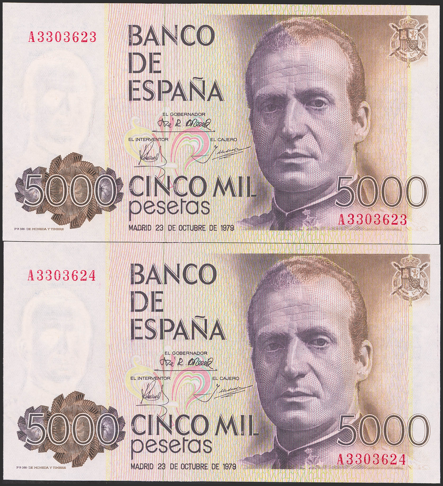 5000 Pesetas. October 23, 1979. Correlative couple. Series A. (Edifil 2023: 478a). Almost Uncirculated-.