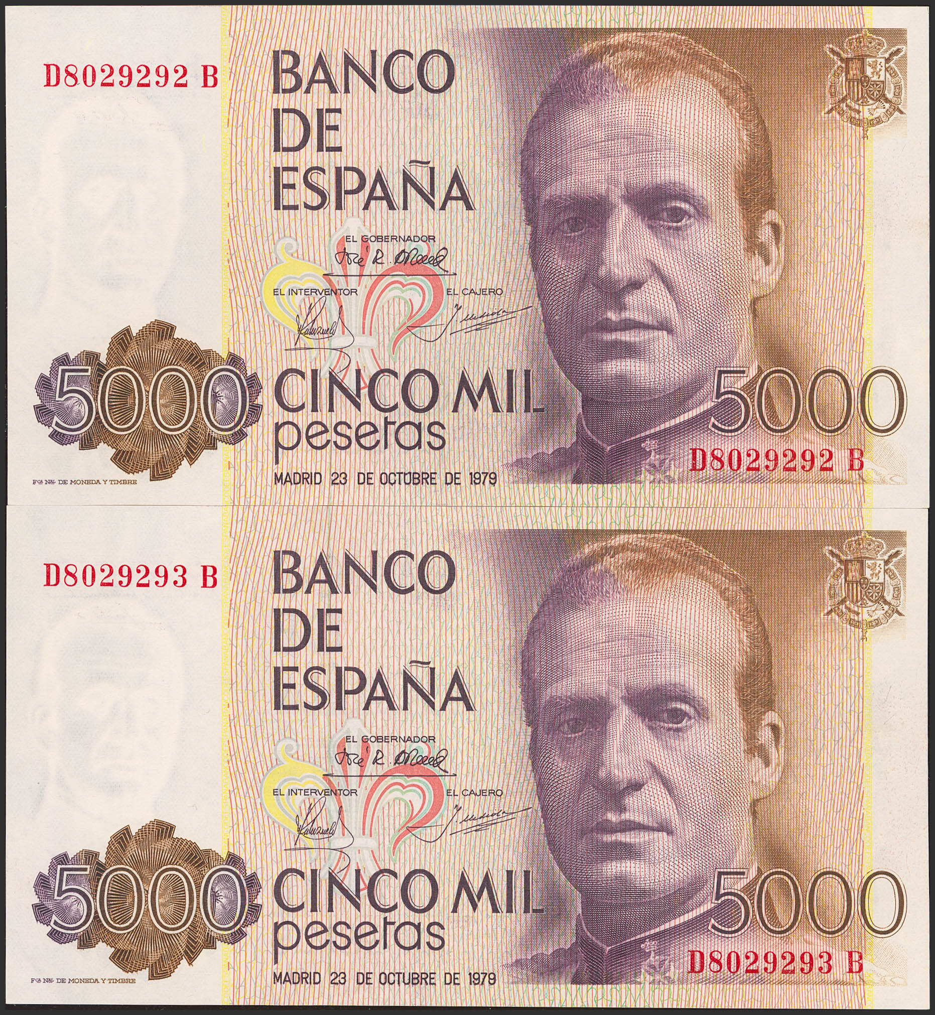 5000 Pesetas. October 23, 1979. Correlative couple. DB series. (Edifil 2023: 478a). Almost Uncirculated.