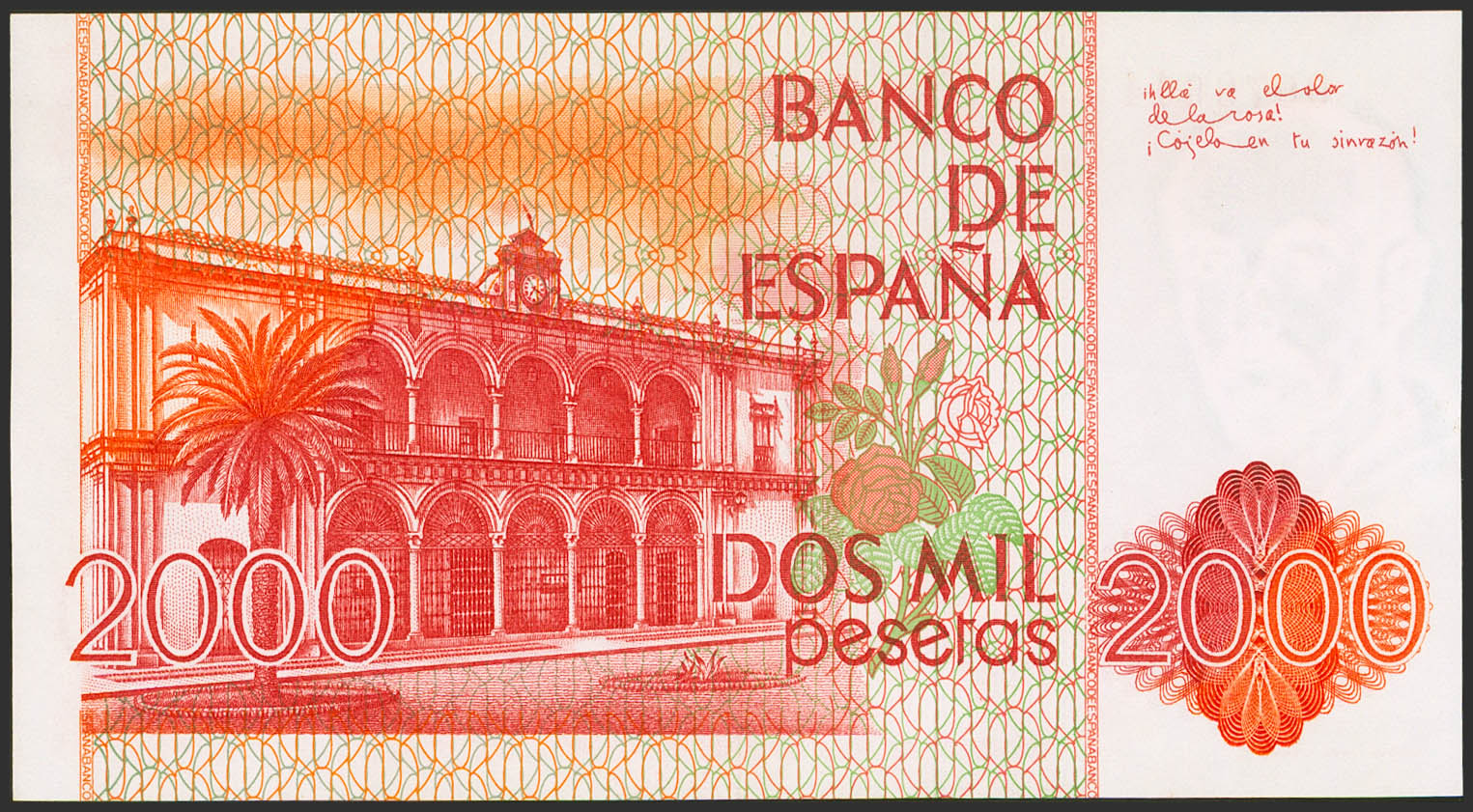 2000 Pesetas. July 22, 1980. No series. (Edifil 2023: 479). Uncirculated.