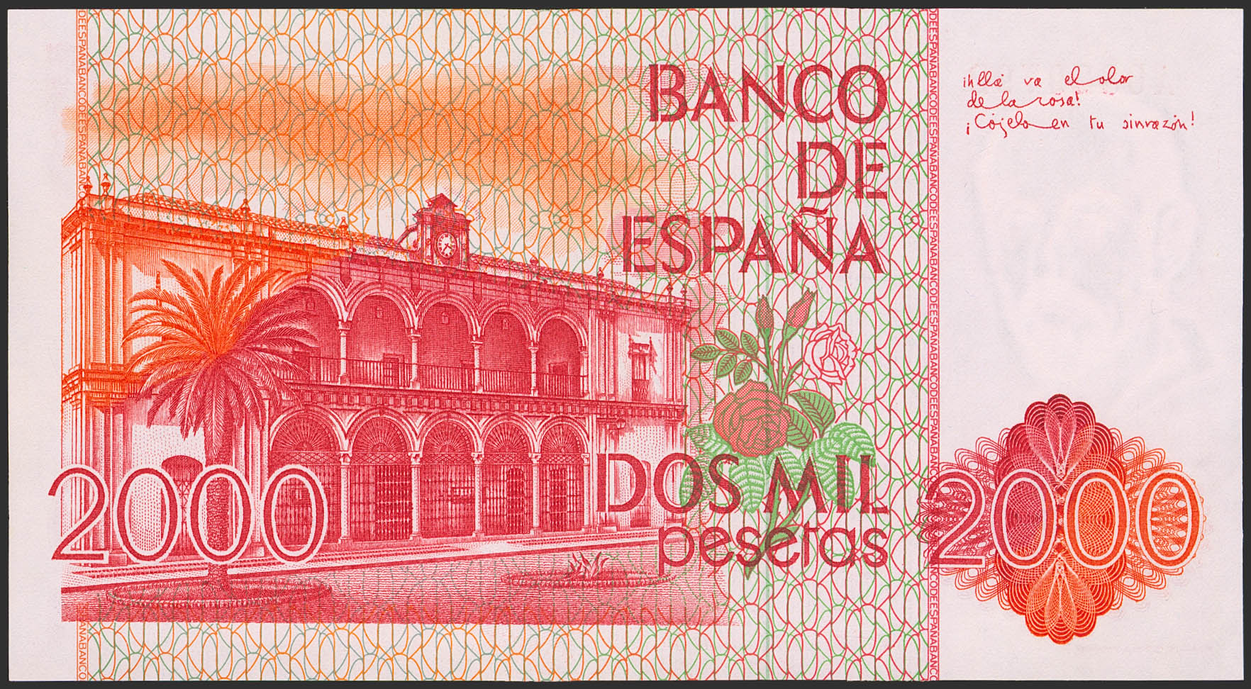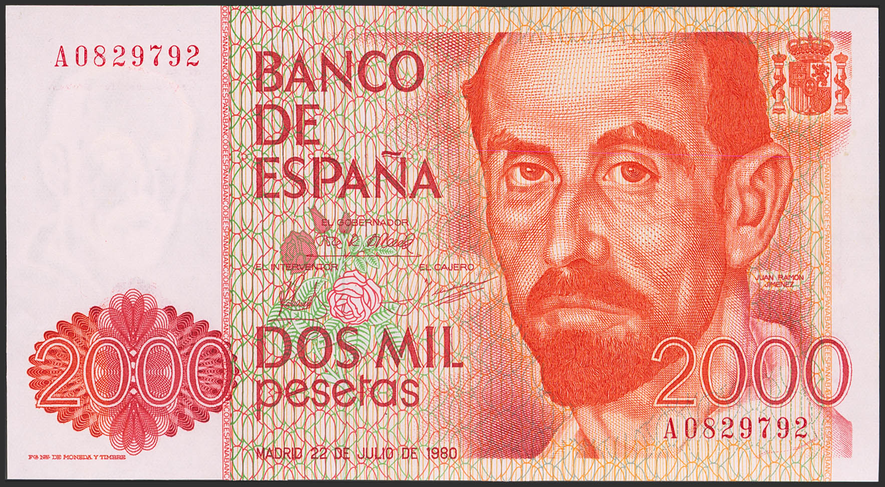2000 Pesetas. July 22, 1980. Series A. (Edifil 2023: 479a). Uncirculated.
