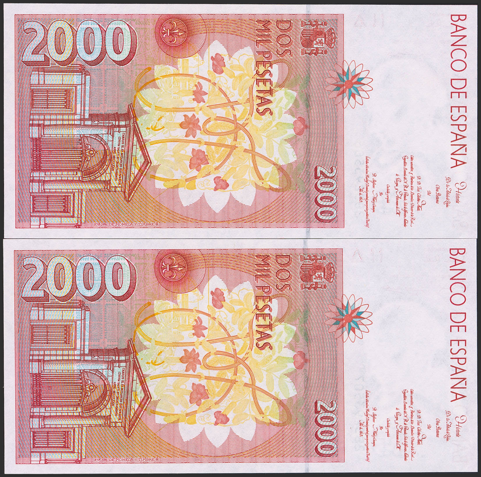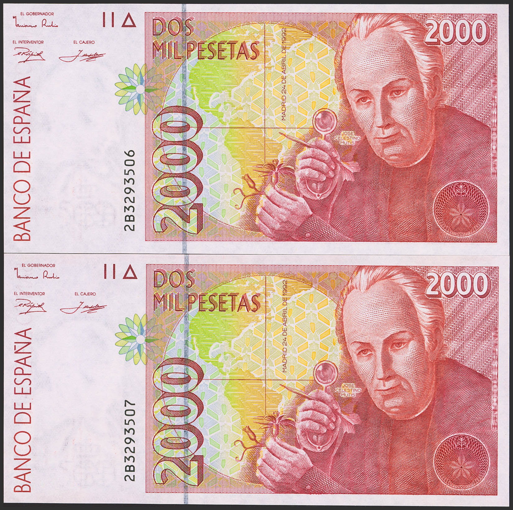 2000 Pesetas. April 24, 1992. Correlative couple. Series 2B. (Edifil 2023: 482Aa). Uncirculated/ Almost Uncirculated.