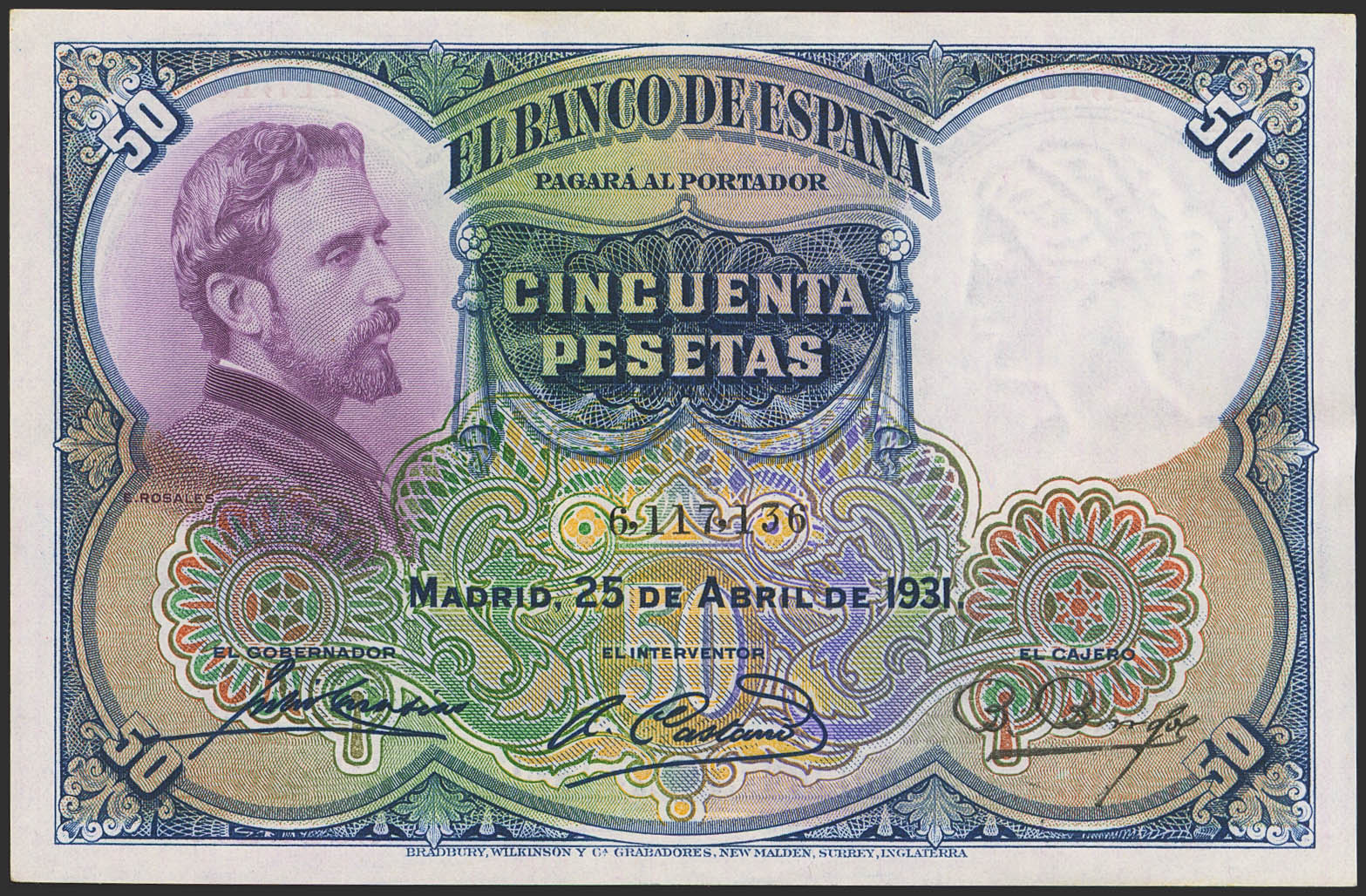 50 Pesetas. April 25, 1931. No series. (Edifil 2021: 359). It retains much of its original finish. Extremely Fine.