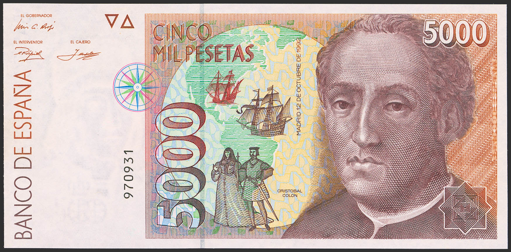 5000 Pesetas. October 12, 1992. No series. (Edifil 2023: 484). Uncirculated.