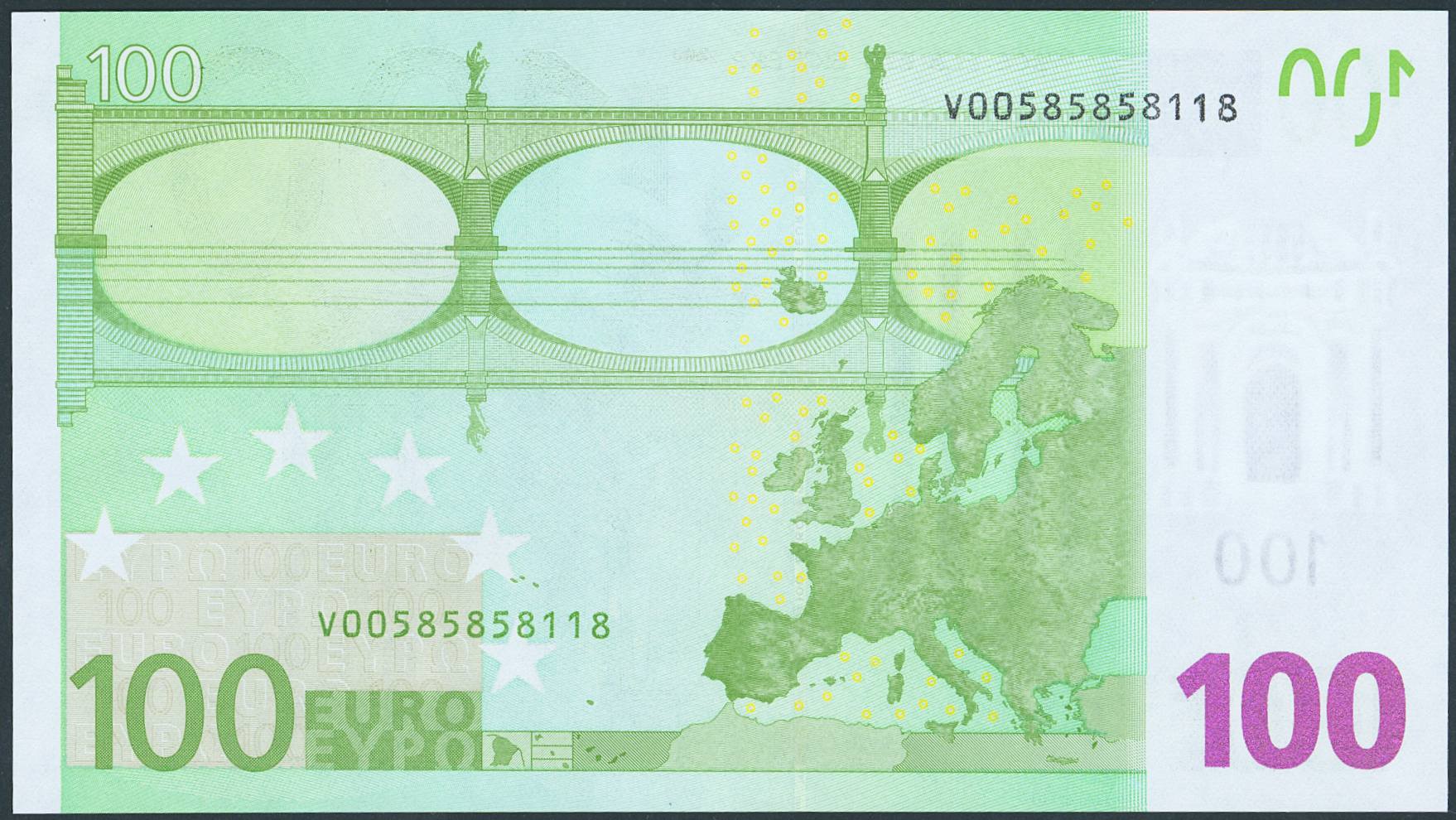 100 euros. January 1, 2002. Signature Duisenberg. Series V (Spain). (Edifil 2023: 490). Uncirculated.
