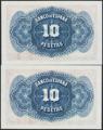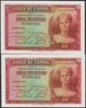 10 Pesetas. 1935. Correlative couple. Silver Certificate. Series A. (Edifil 2023: 364a). Original sizing. Almost Uncirculated.