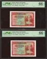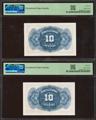 10 Pesetas. 1935. Silver Certificate. Correlative couple. Series C, last series issued. (Edifil 2023: 364b, Pick: 86a). Original sizing. Uncirculated. PMG66EPQ packages, both.